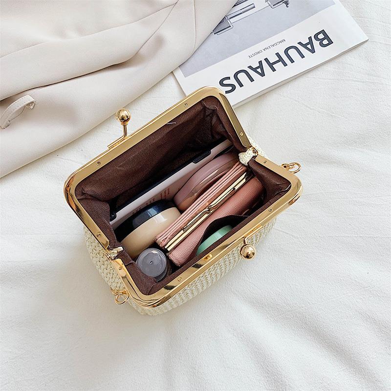 Chain Straw Kiss Lock Shell Women's Handbags Vintage Designer Bag Women Shoulder Crossbody Bag free shipping