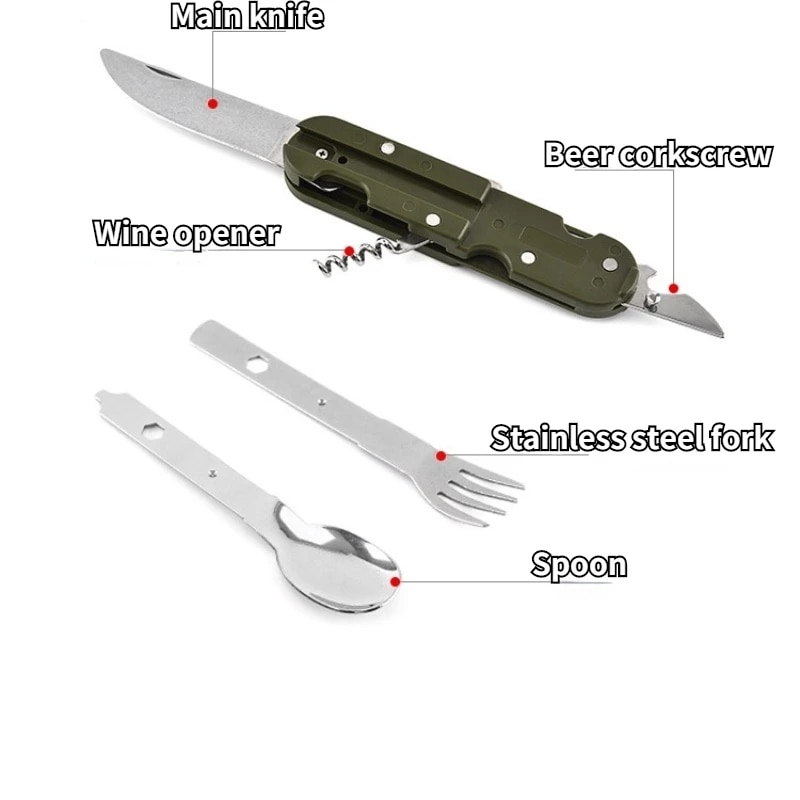 Foldable Outdoor Tableware Multi-functional Portable Outdoor Camping Survival Stainless Tool Knives and Forks Camping Hiking