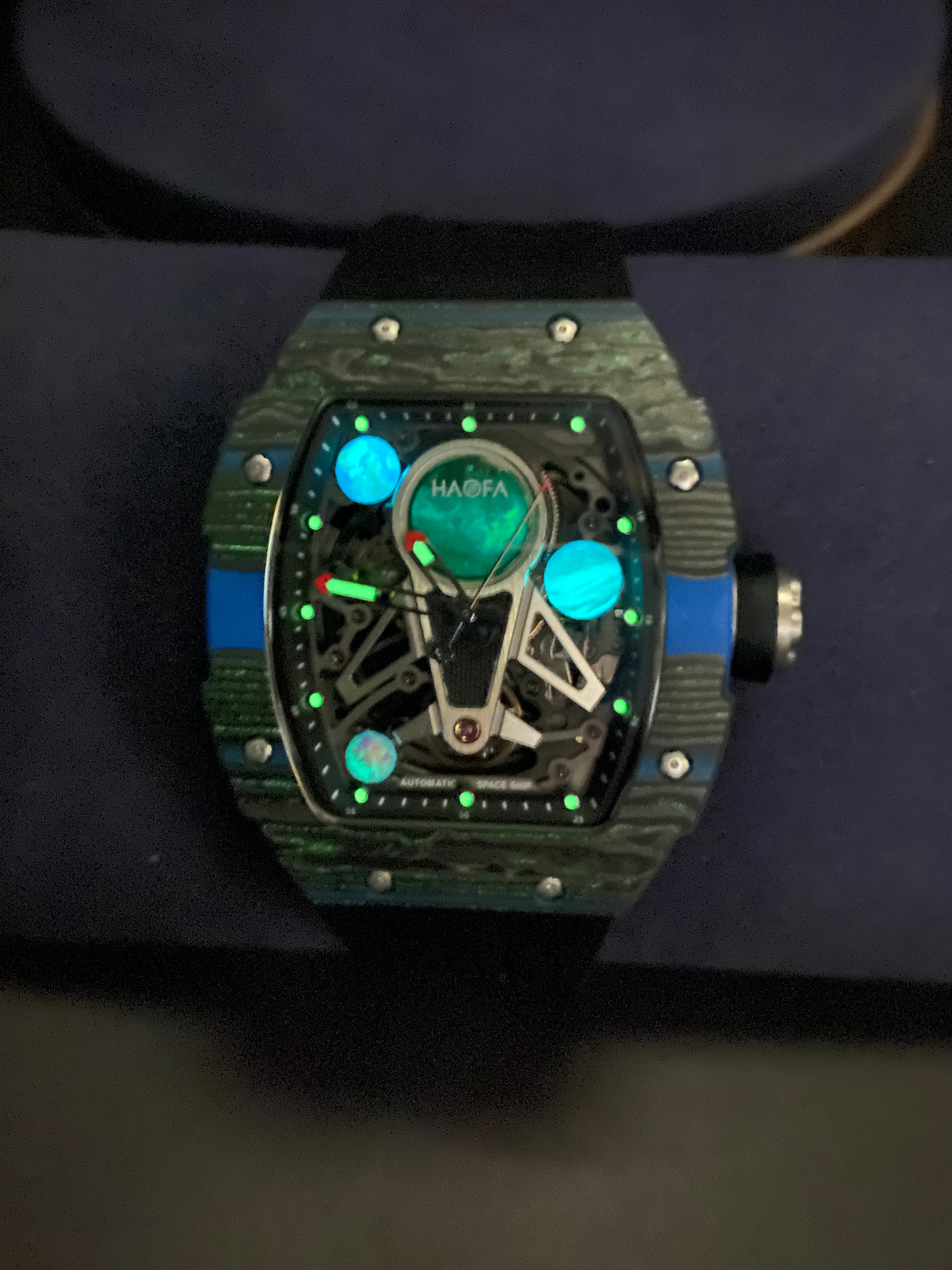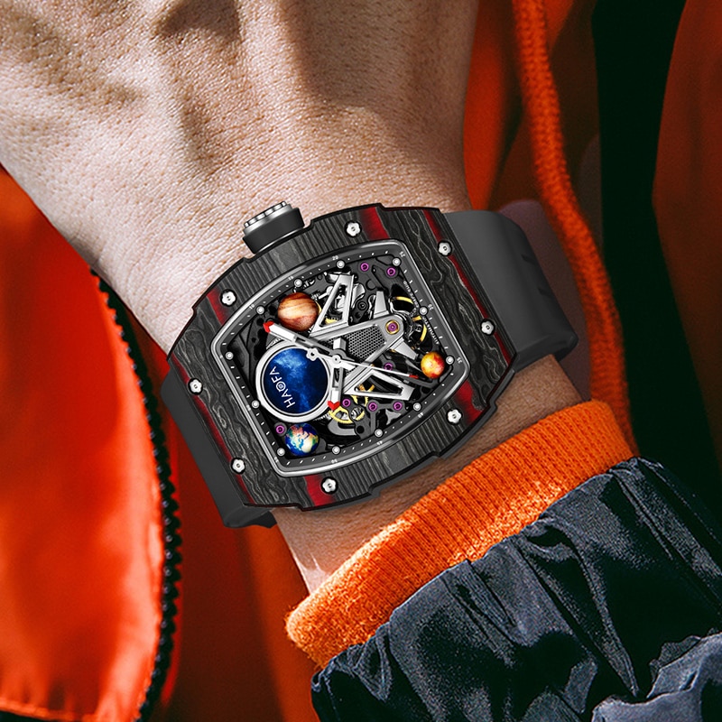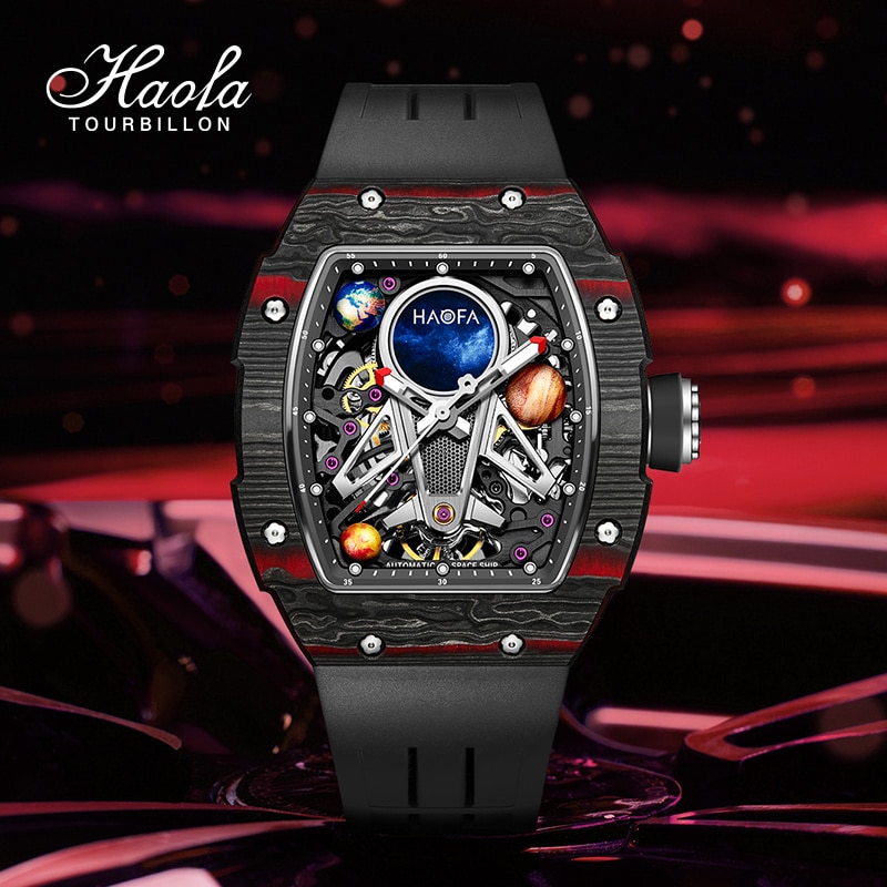 Haofa Automatic Mechanical Watch for Men 3D Interstellar Hollow Watch Carbon Fiber Sapphire Waterproof Luminous Casual Men Watch