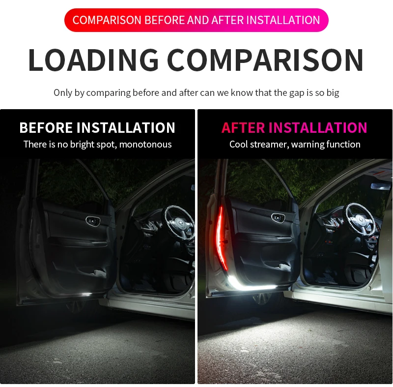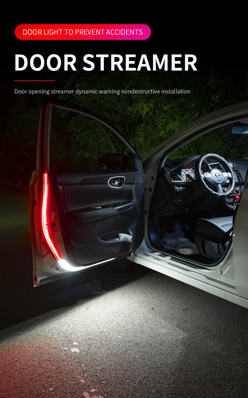 LED Car Door Opening Warning Light Strip 120cm Decoration Welcome Decor Lamp Anti Rear-end Collision Safety Auto Accessories 12v