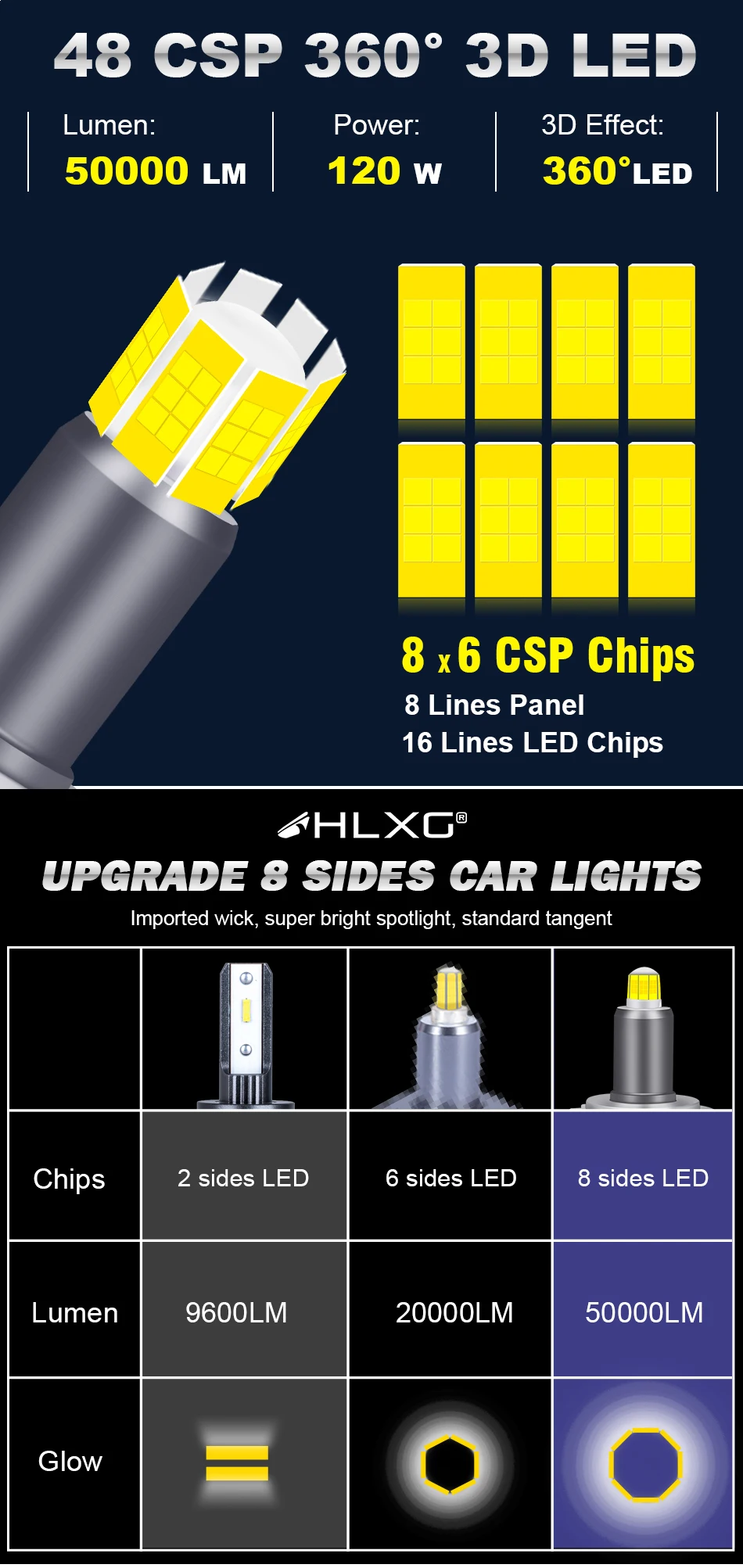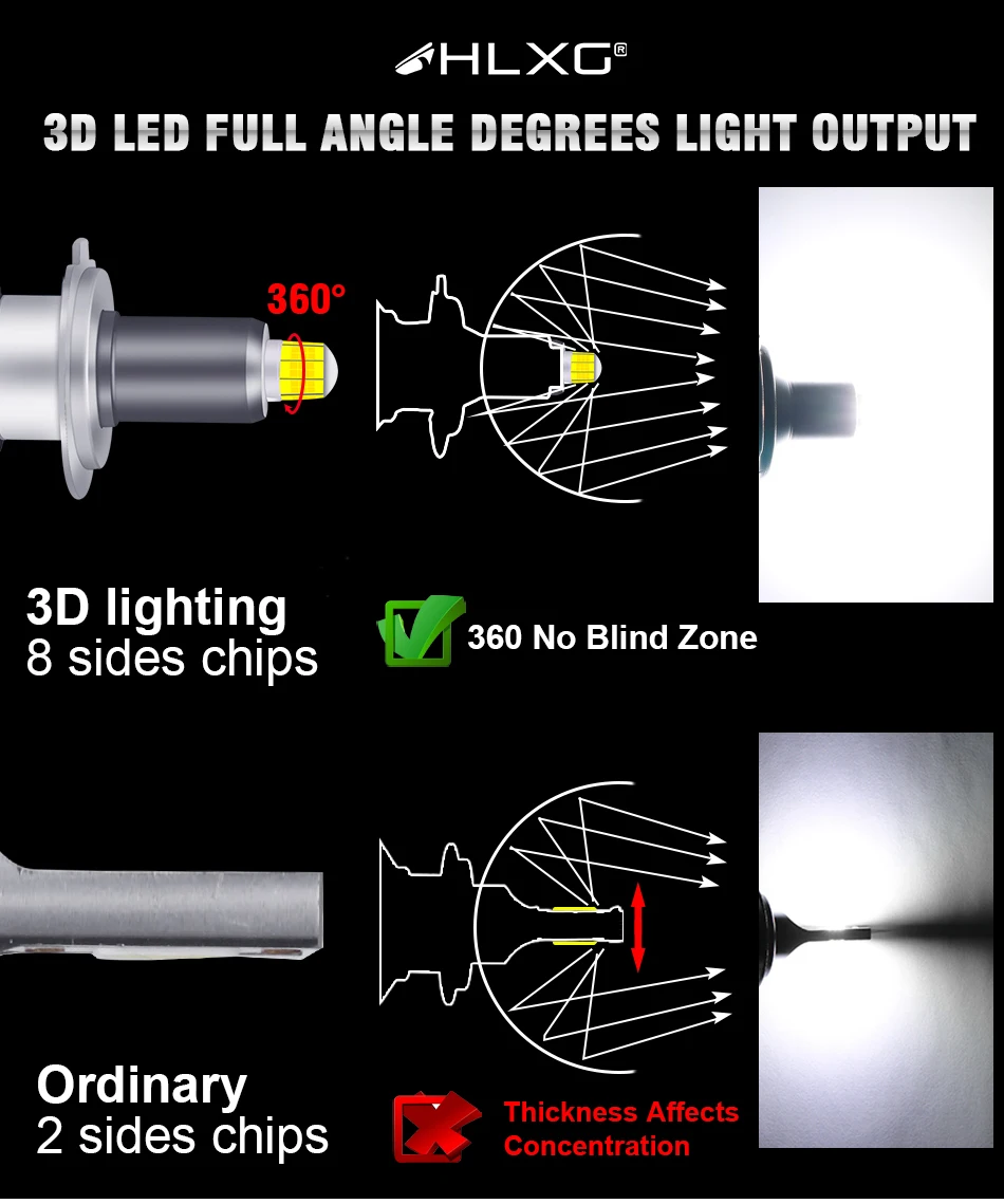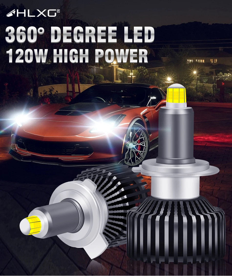 HLXG 360 Turbo CSP H7 canbus 9012 H8 D4S D4R D2S D2R h11 H1 LED 9005 9006 HB3 HB4 12V Auto Lights lamp bulb 6000K 4300K 50000LM