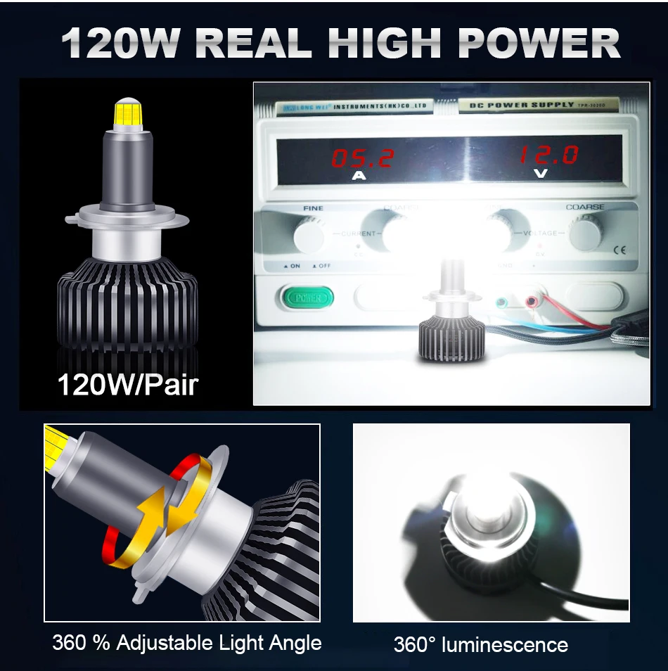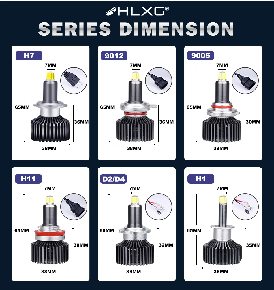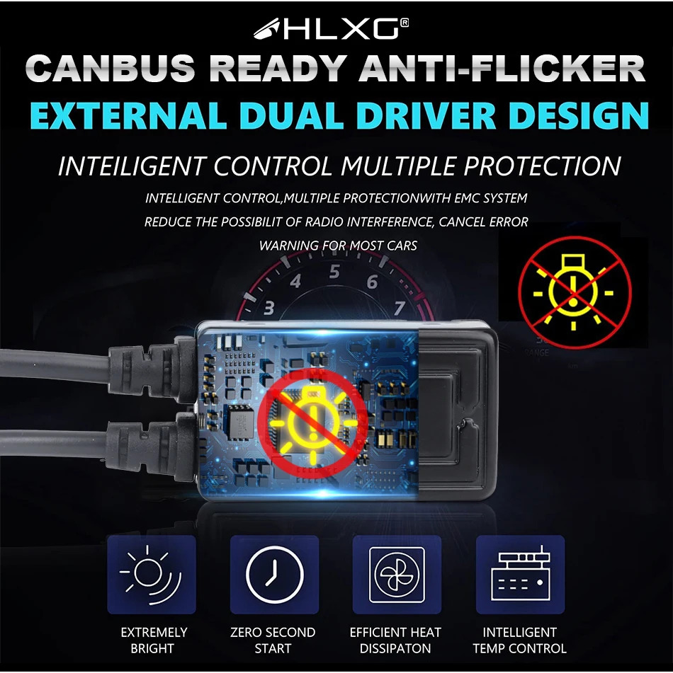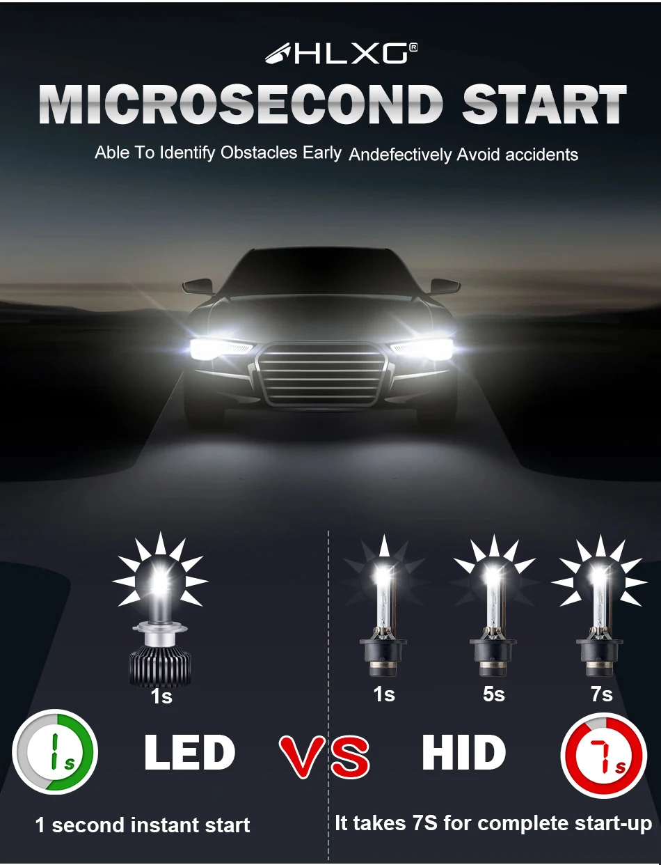 HLXG 360 Turbo CSP H7 canbus 9012 H8 D4S D4R D2S D2R h11 H1 LED 9005 9006 HB3 HB4 12V Auto Lights lamp bulb 6000K 4300K 50000LM