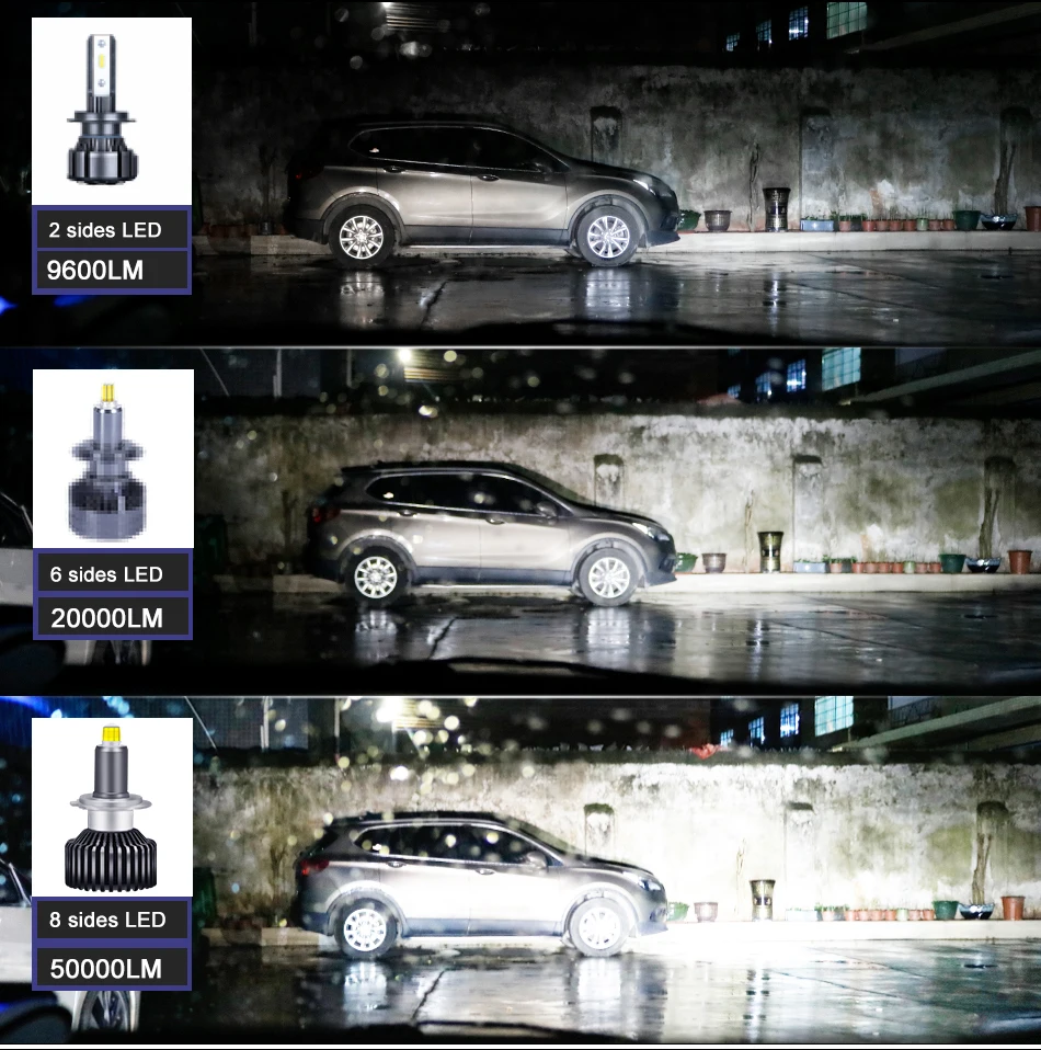 • 50000LM, illumination distance is up to 150 m, +400% BRIGHTNESS