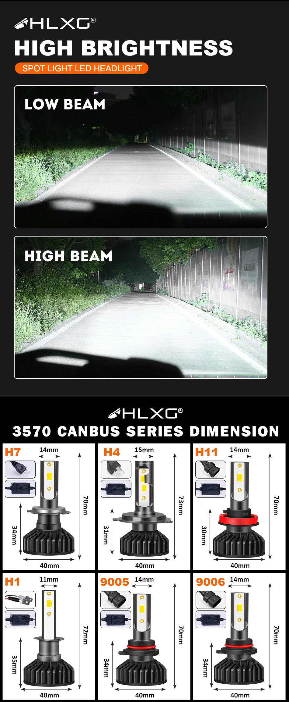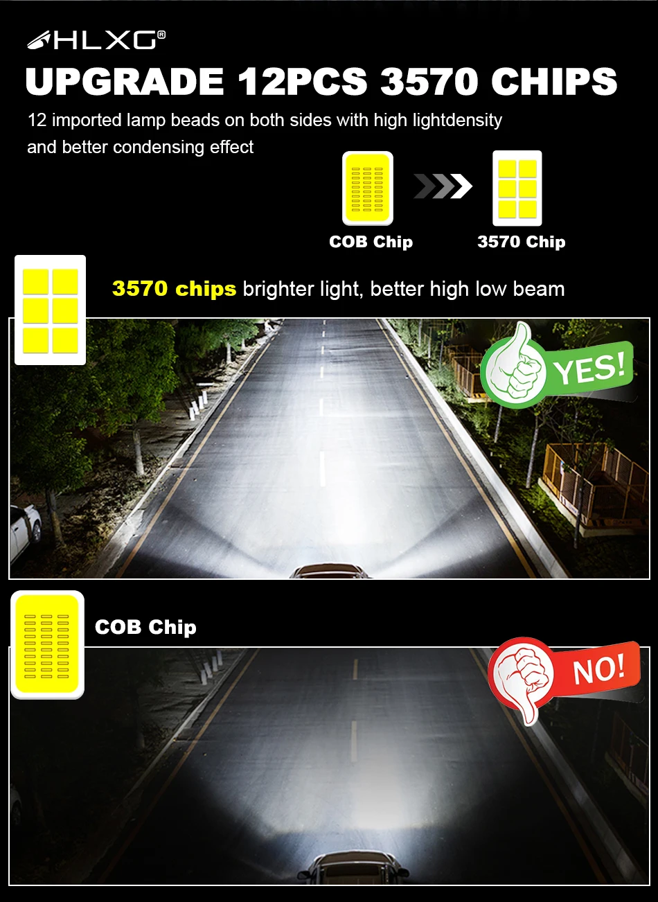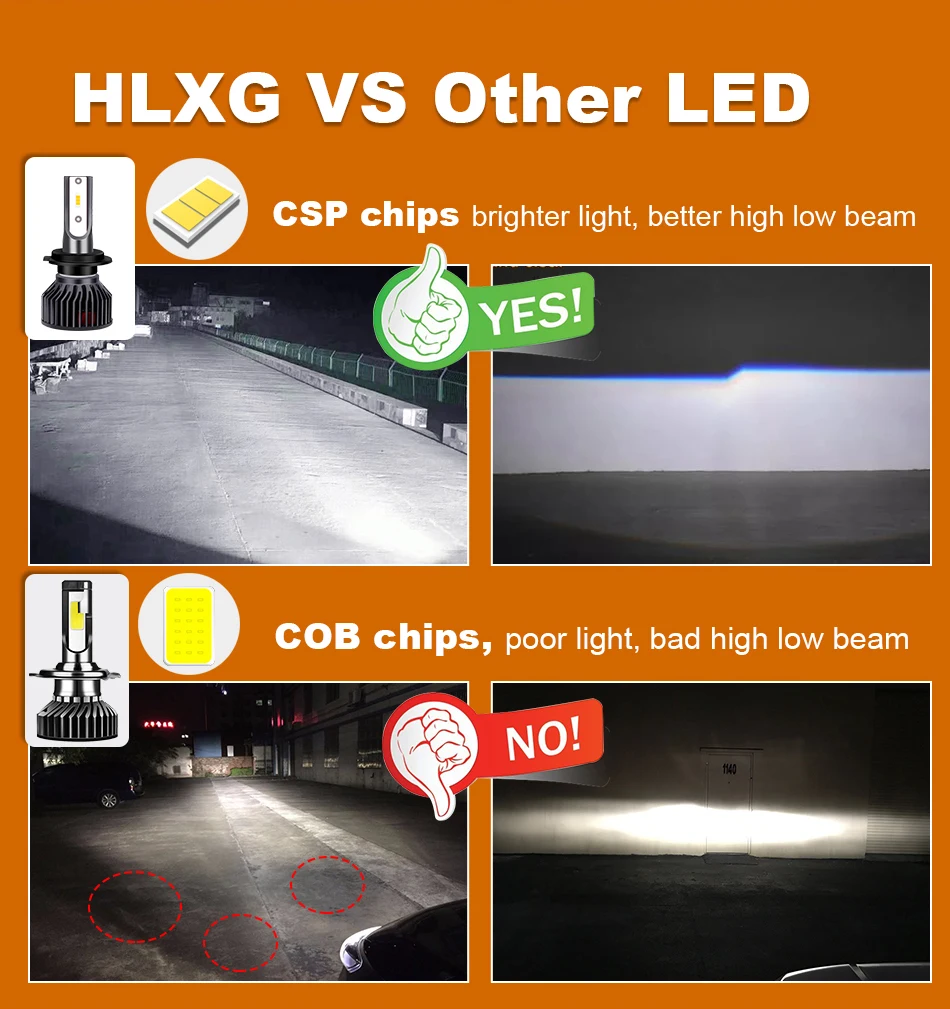 Chips: CSP chips, better lighting pattern than cob chips, do not dazzle the oncoming drivers.