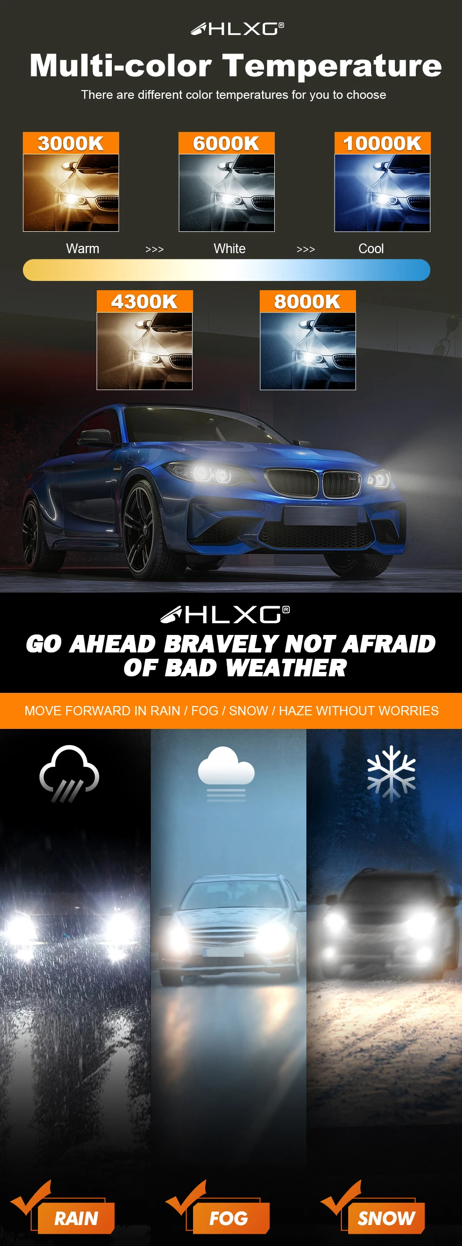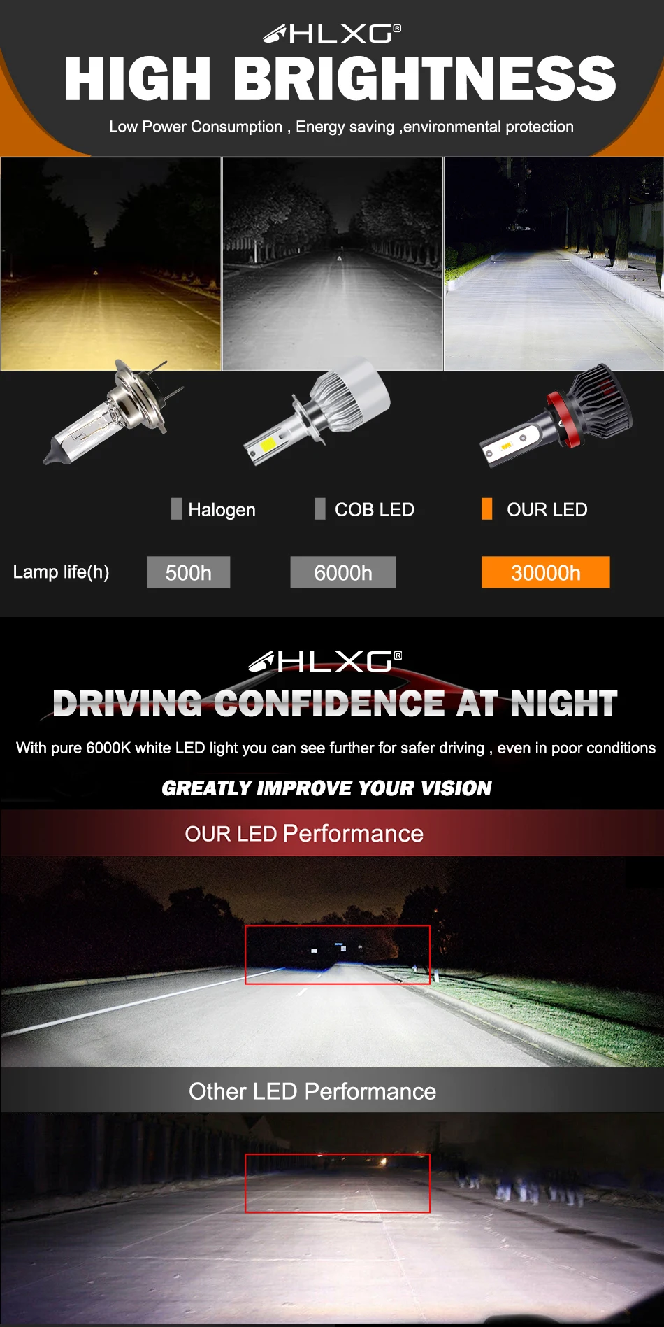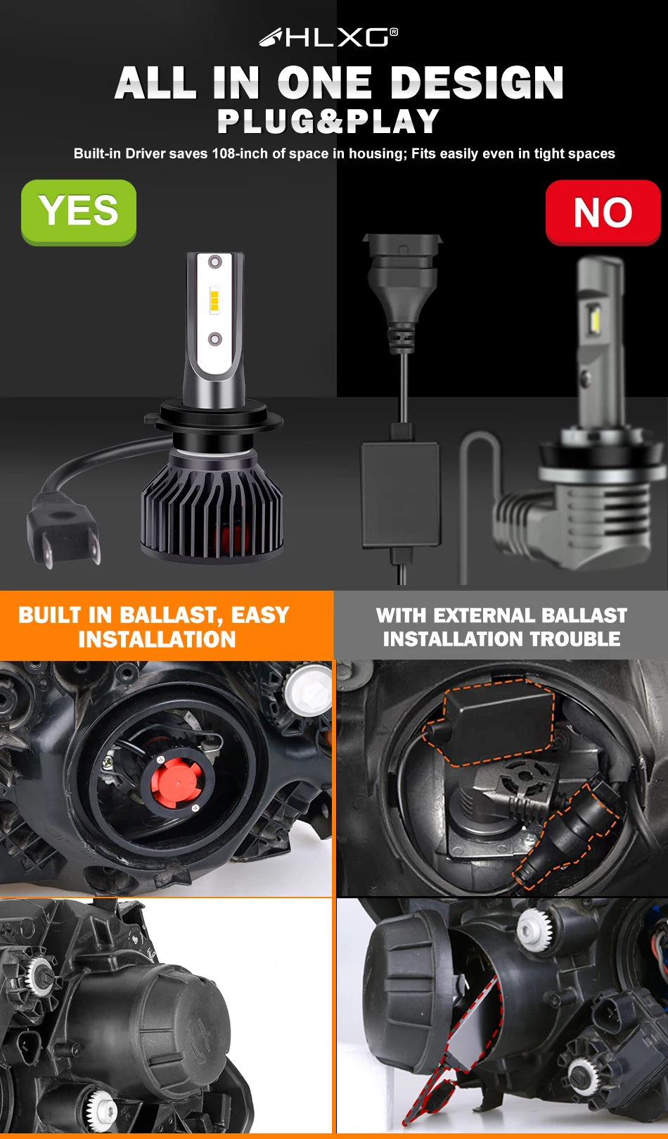 Chips: CSP chips, better lighting pattern than cob chips, do not dazzle the oncoming drivers.