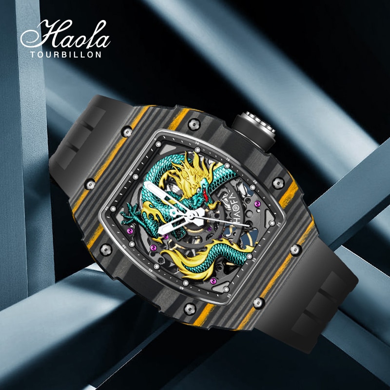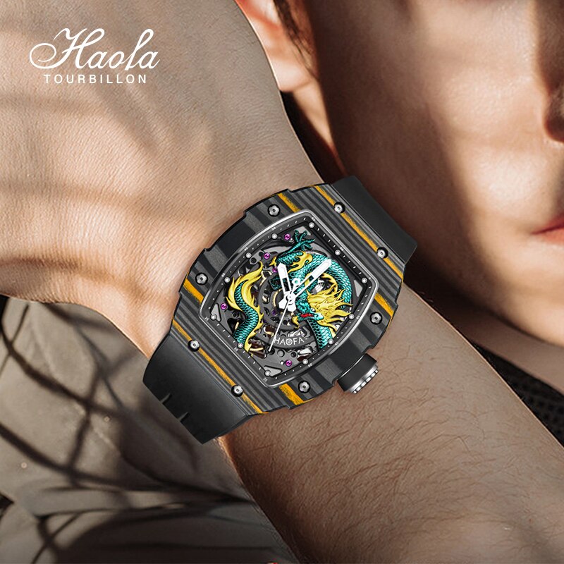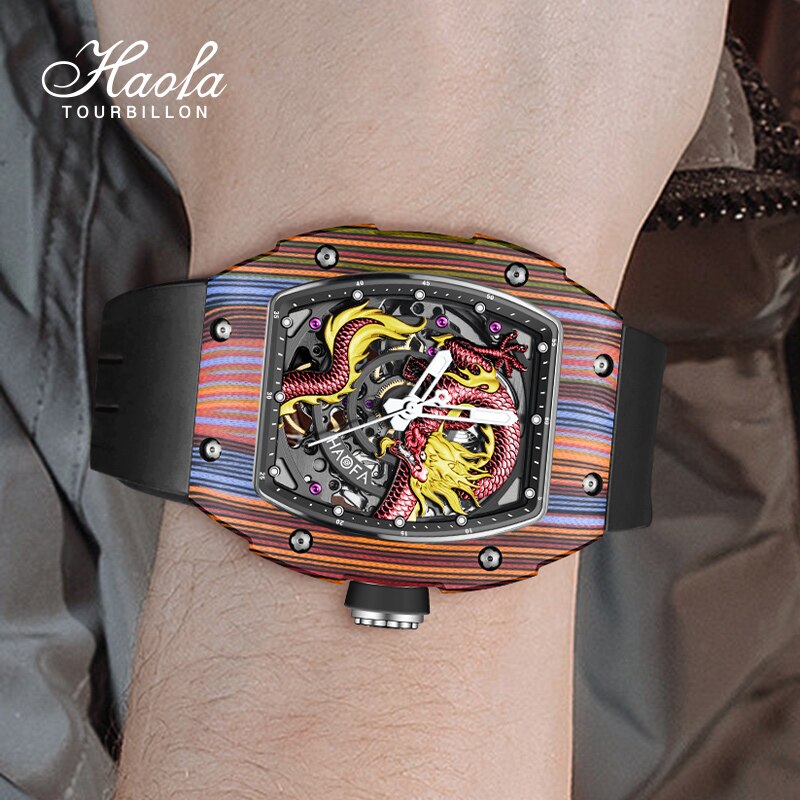 Haofa Automatic 3D Dragon Watch Men Sapphire NTPT Mechanical Watches for Men Luxury Carbon Fiber Luminous Clock orologio uomo