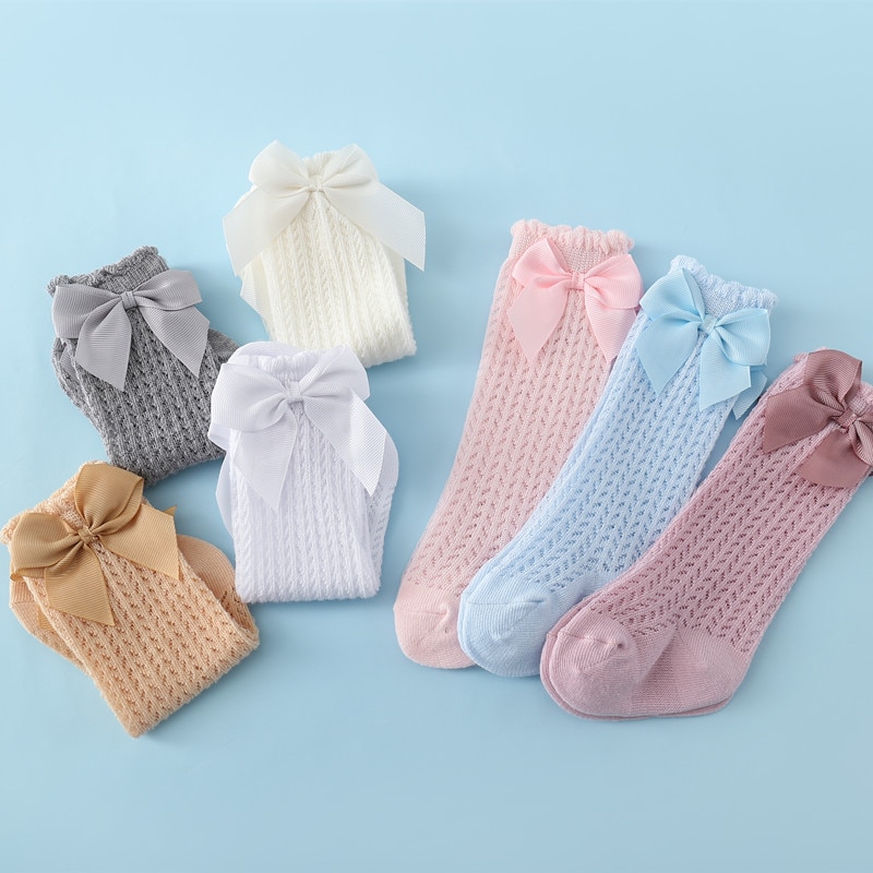 lawadka Baby Girl Socks Toddler Baby Bow Cotton Summer Mesh Baby Knee Socks Newborn Infant Non-slip Long Baby Boys Socks 0-2T