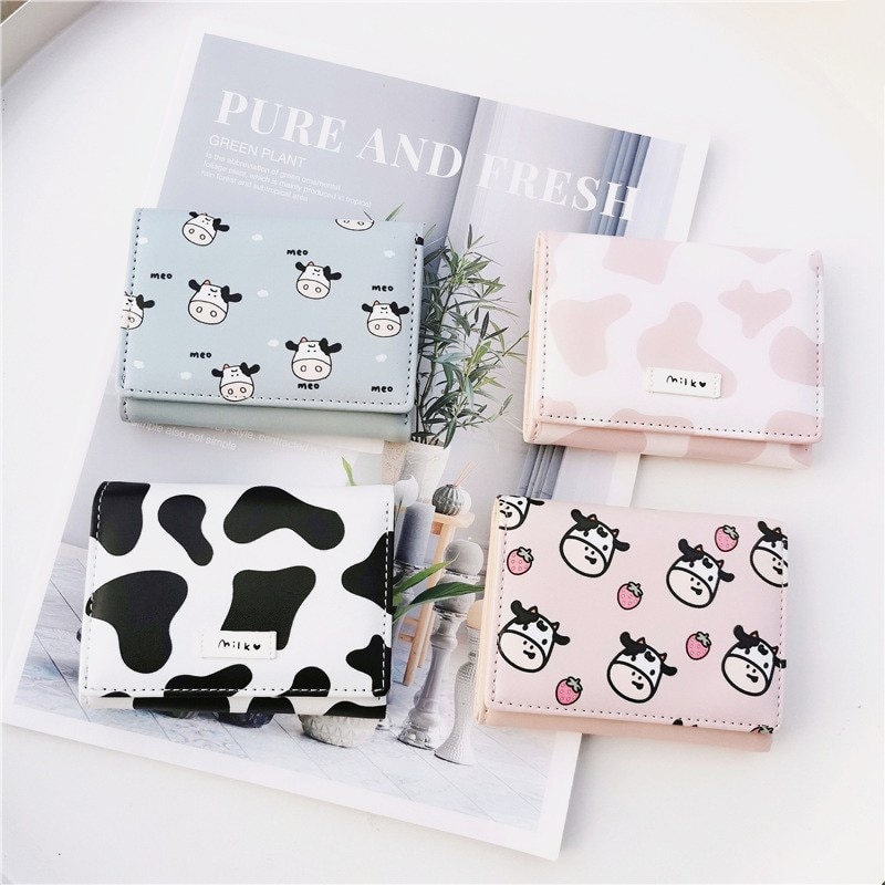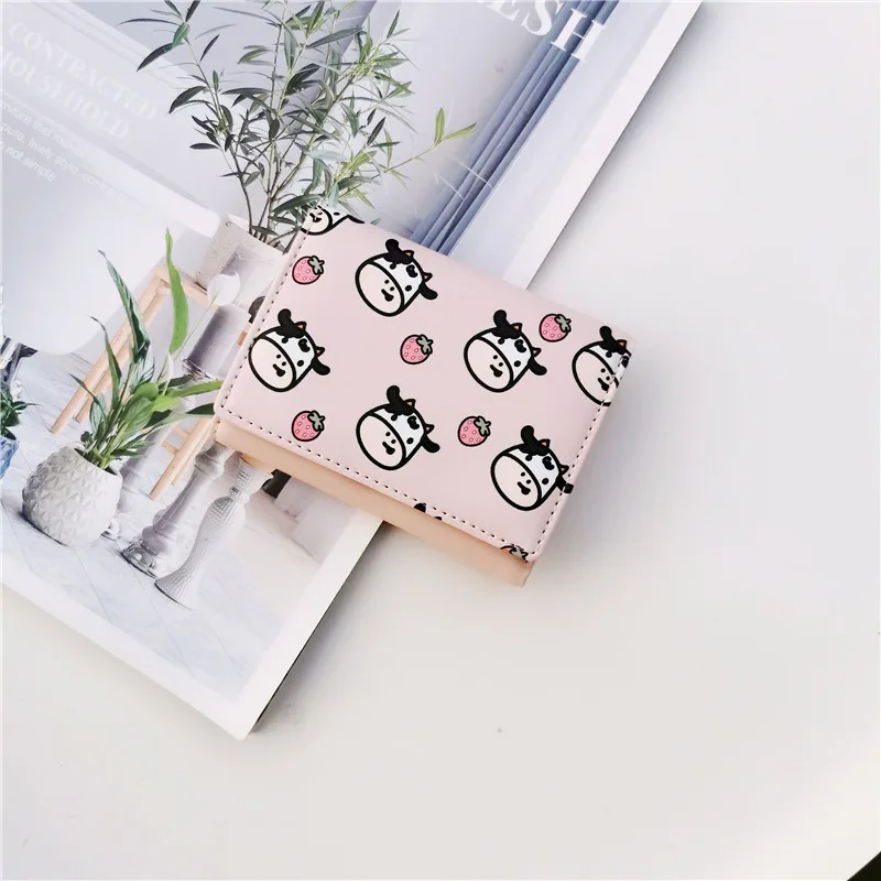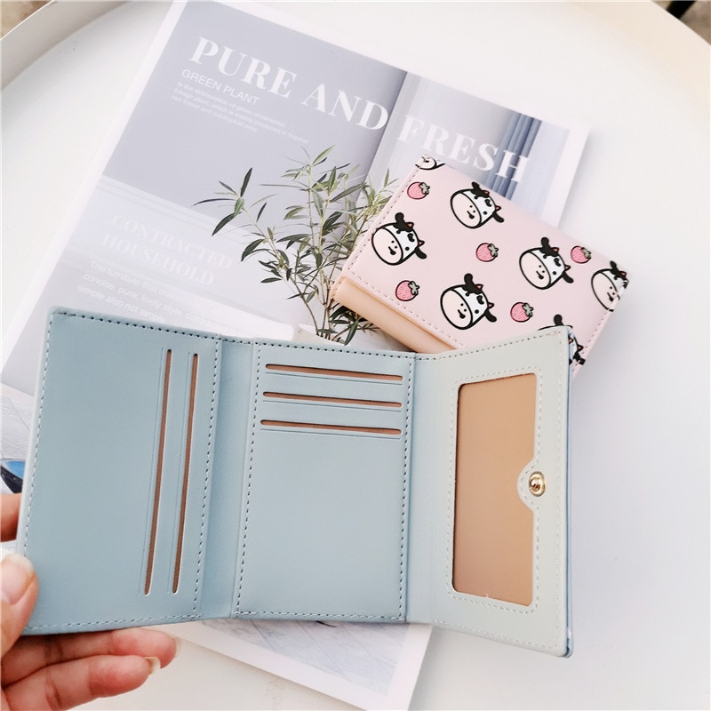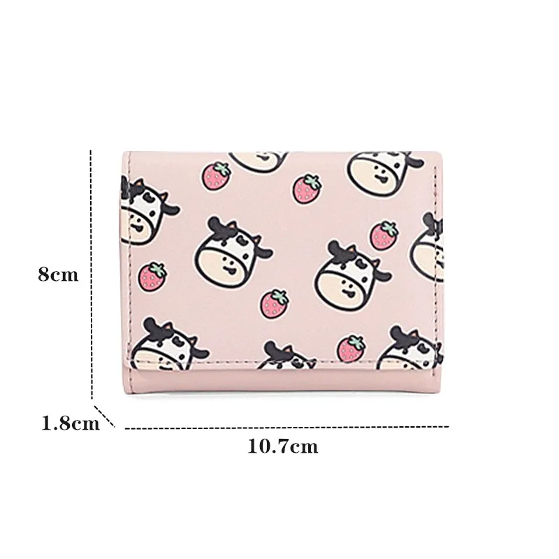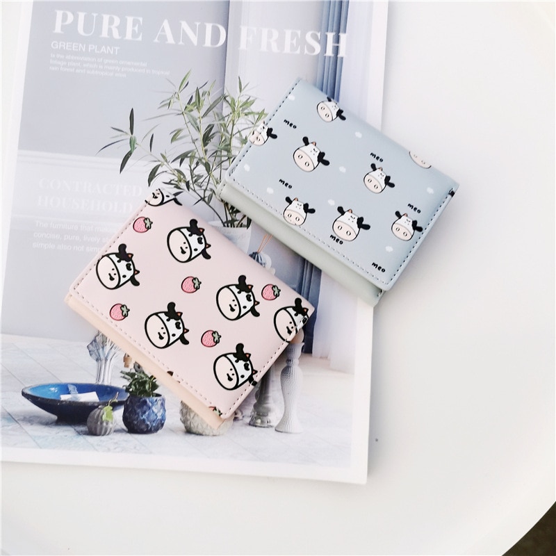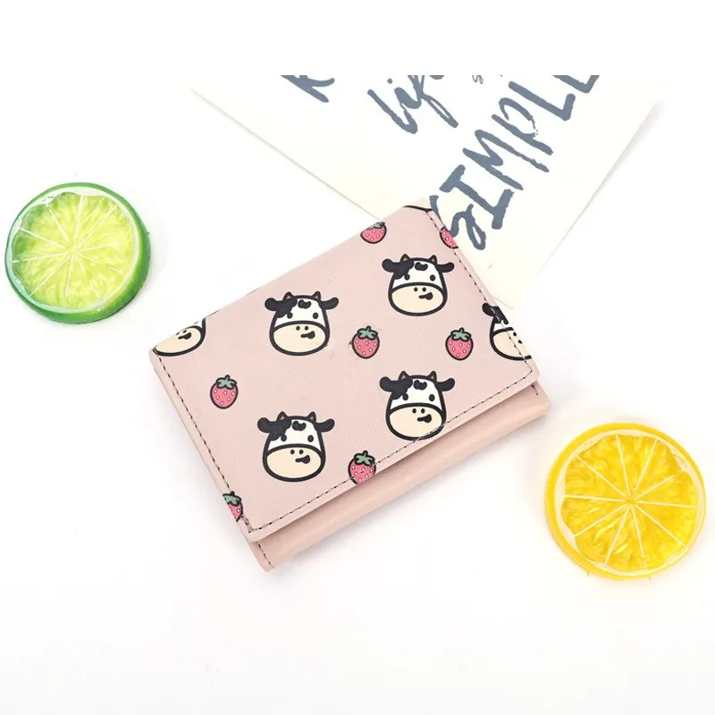 PURDORED 1 Pc Cartoon Little Cow Pattern Mini Wallet Women Business Credit Card Holder Cute Short Card Wallet Case Tarjetero