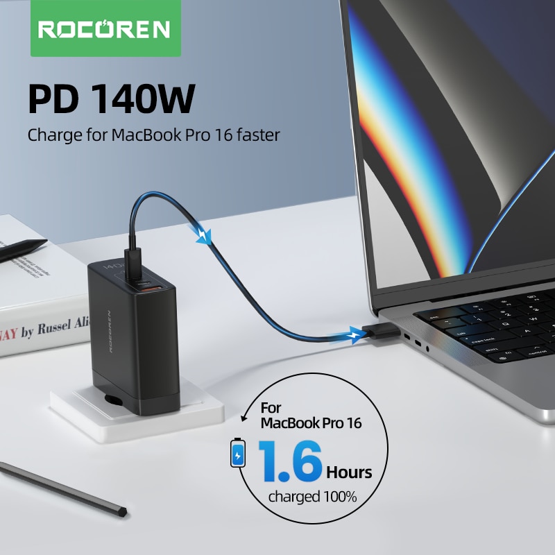 Rocoren 140W GaN USB Charger Type C PD 3.1 QC Quick Charge 4.0 3.0 USBC Fast Charging Charger For MacBook Pro iPhone 14 Laptop