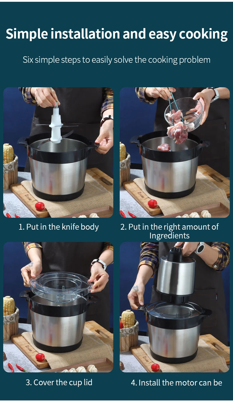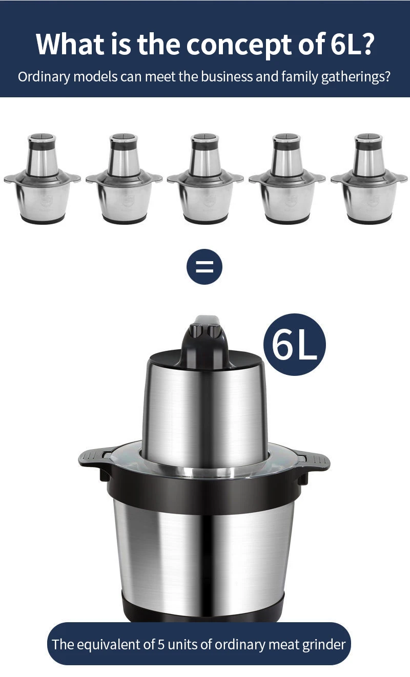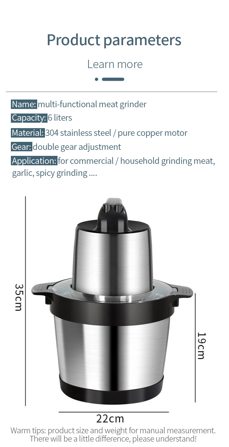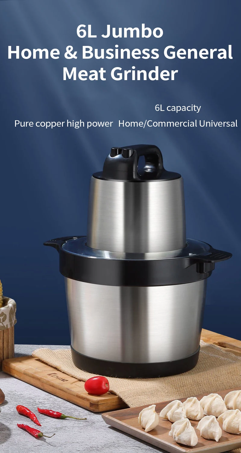 6L Multifunction Electric Meat Grinder Commercial Stainless Steel Vegetable Fruit Food Processor Chopper Food Grinder Mixer