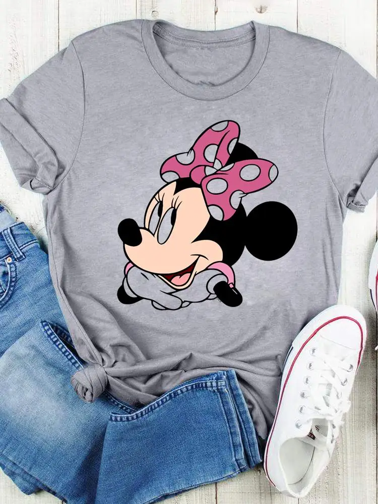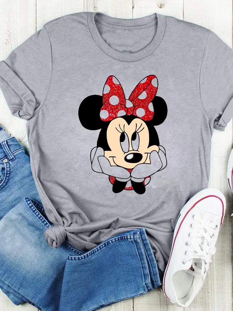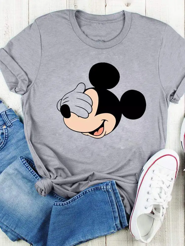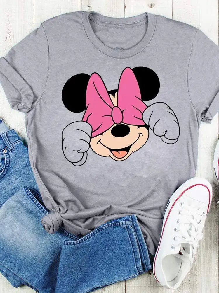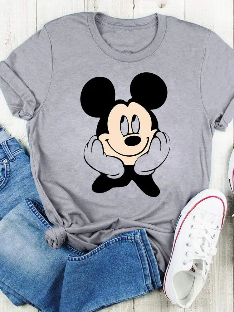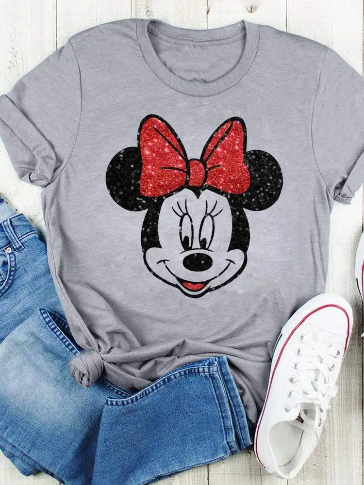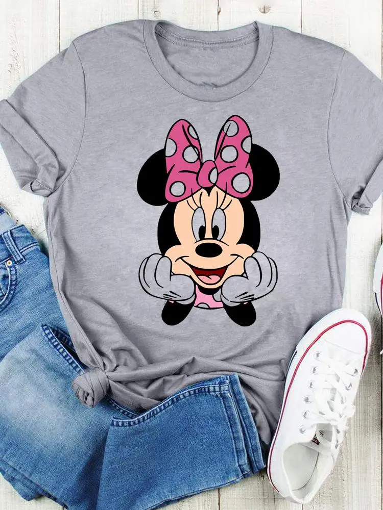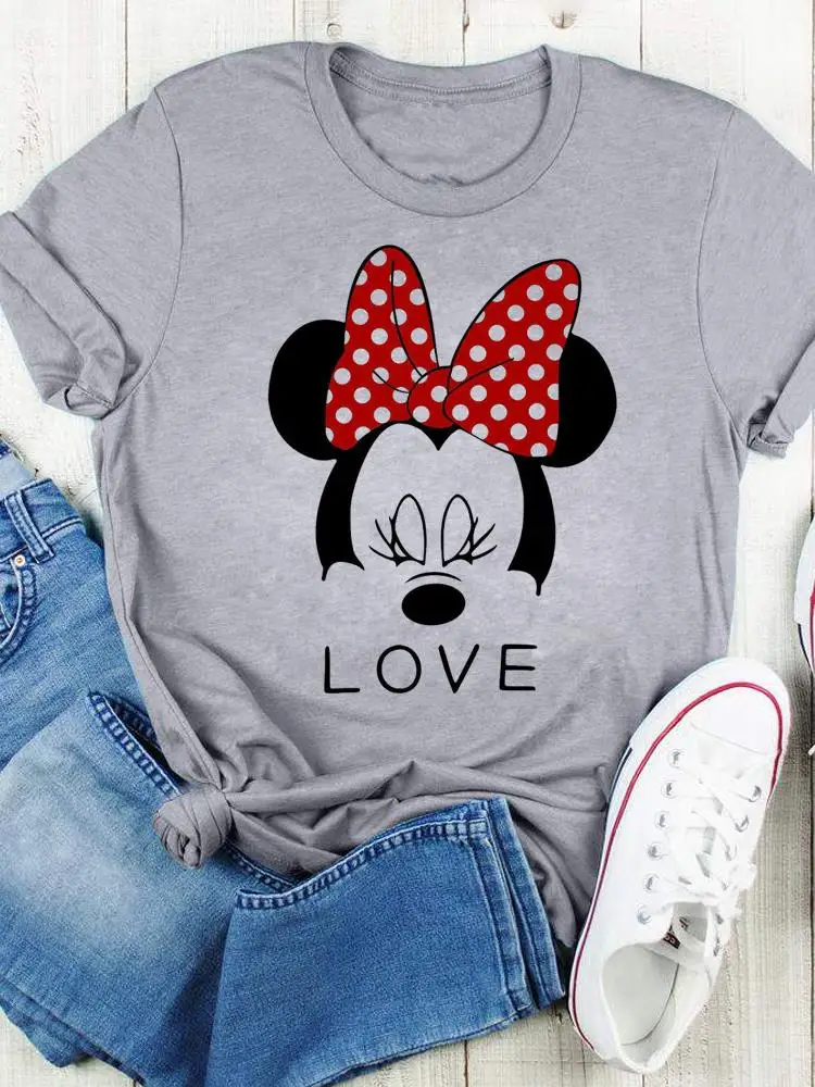 Disney Bow Face Love Summer Tee Shirt Mickey Mouse Fashion Print Clothing Women Cartoon Short Sleeve Top Graphic T-shirts