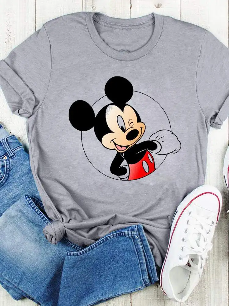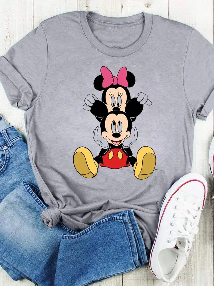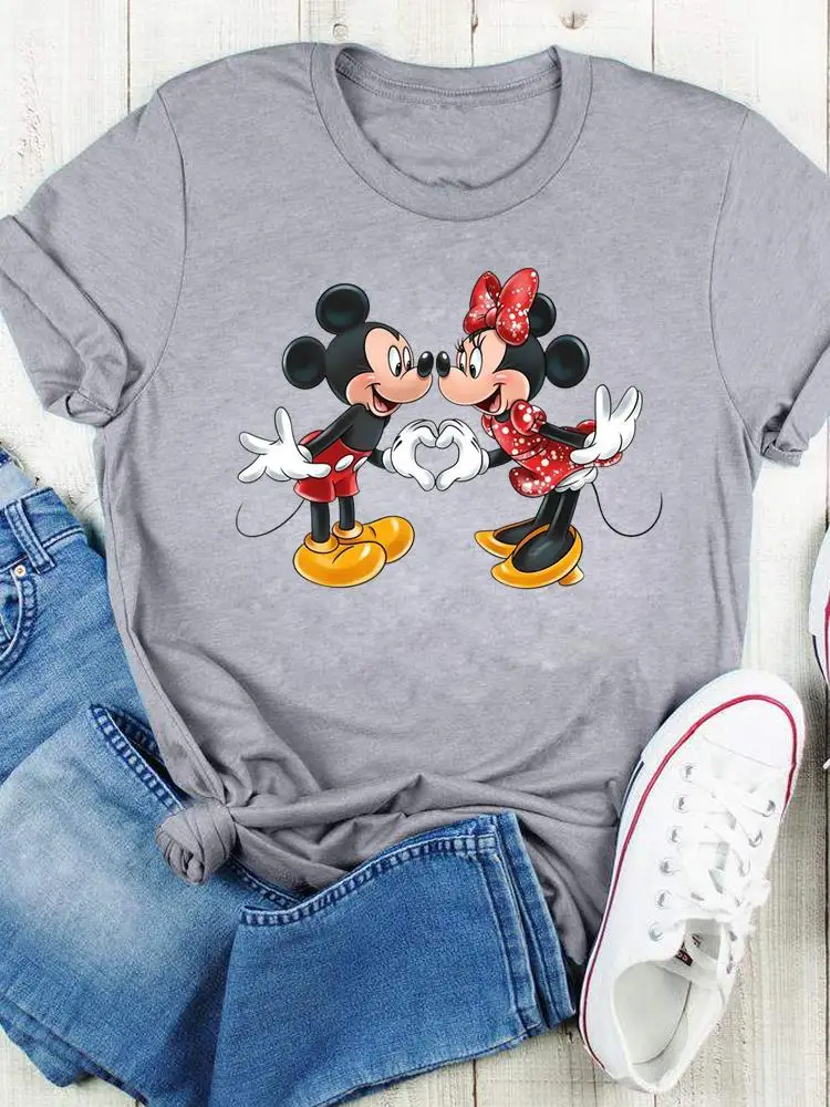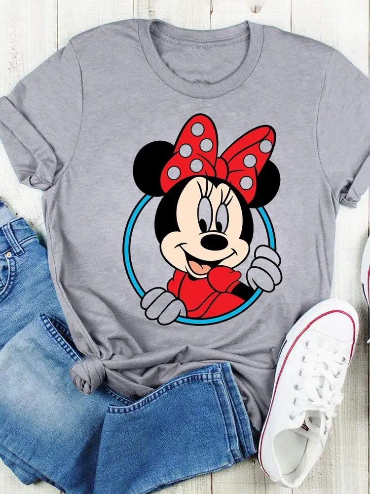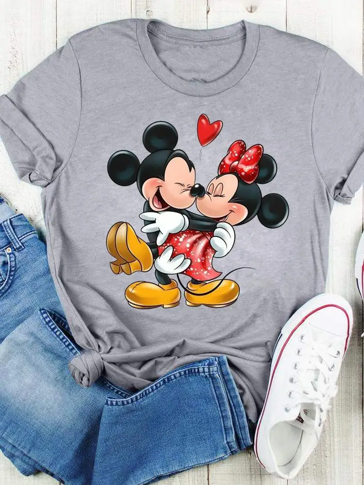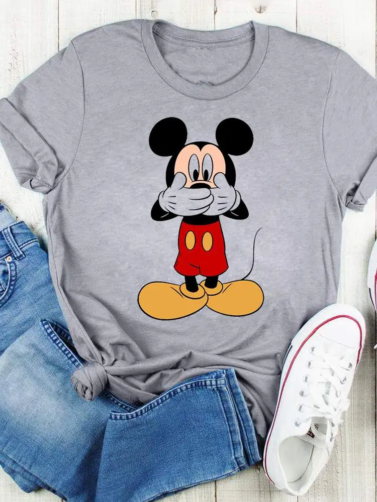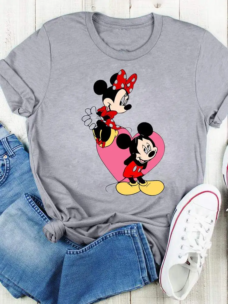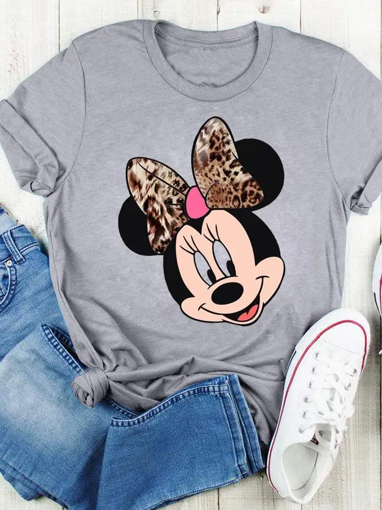 Disney Bow Face Love Summer Tee Shirt Mickey Mouse Fashion Print Clothing Women Cartoon Short Sleeve Top Graphic T-shirts