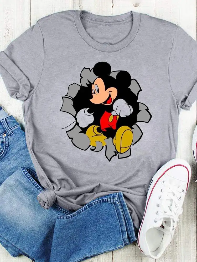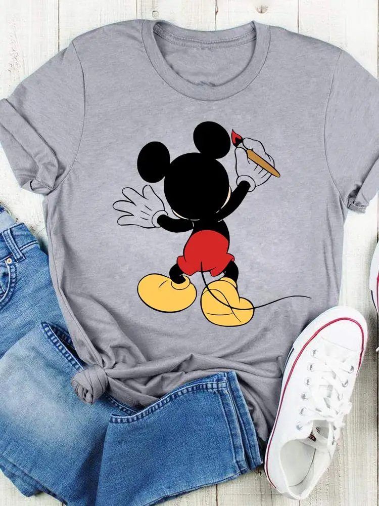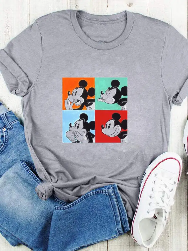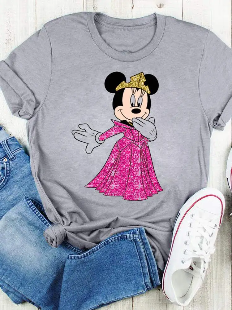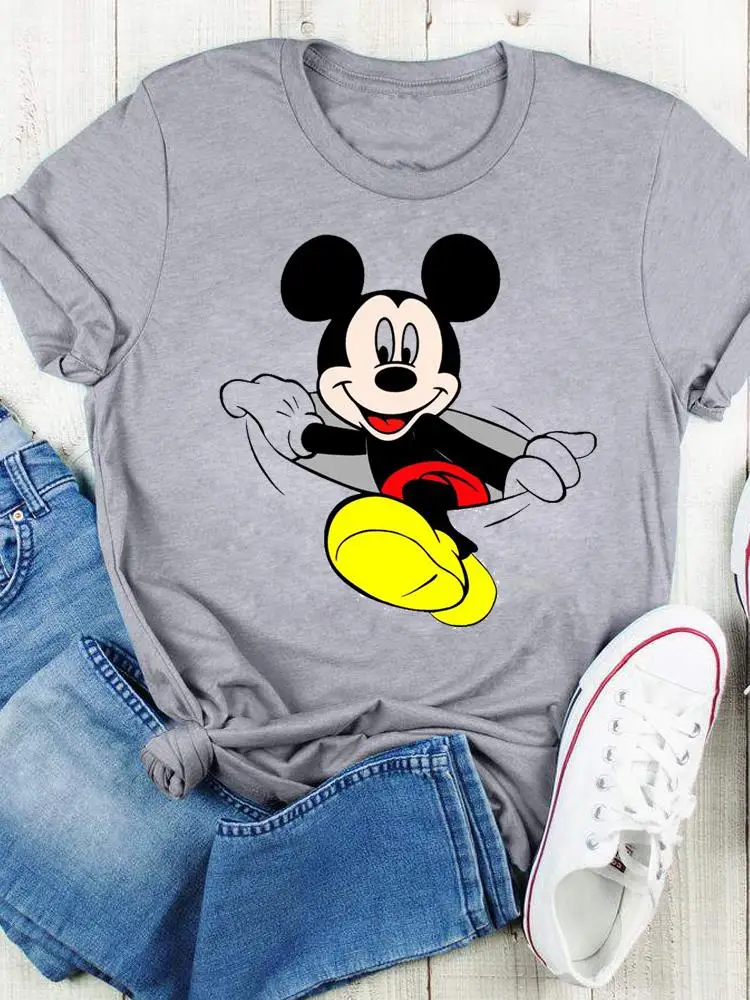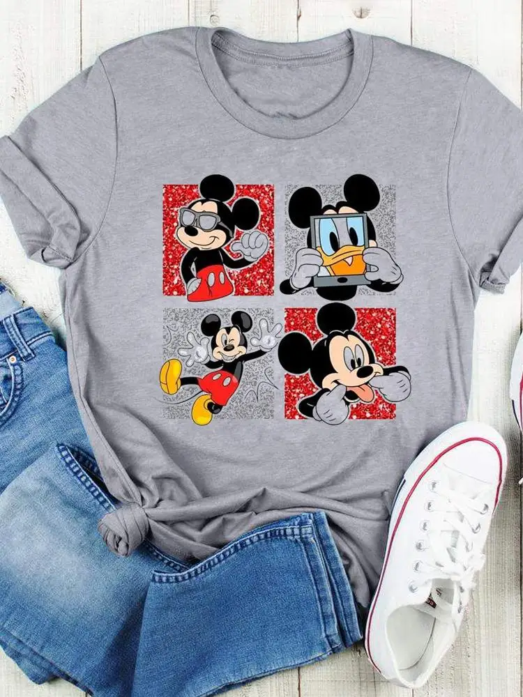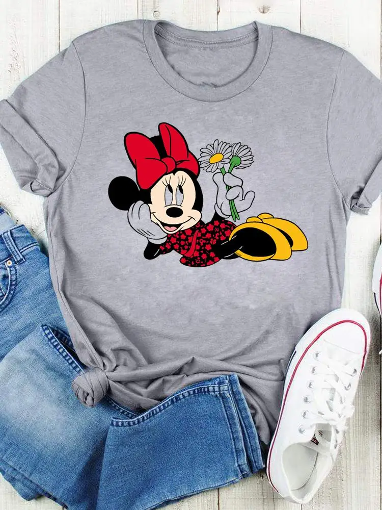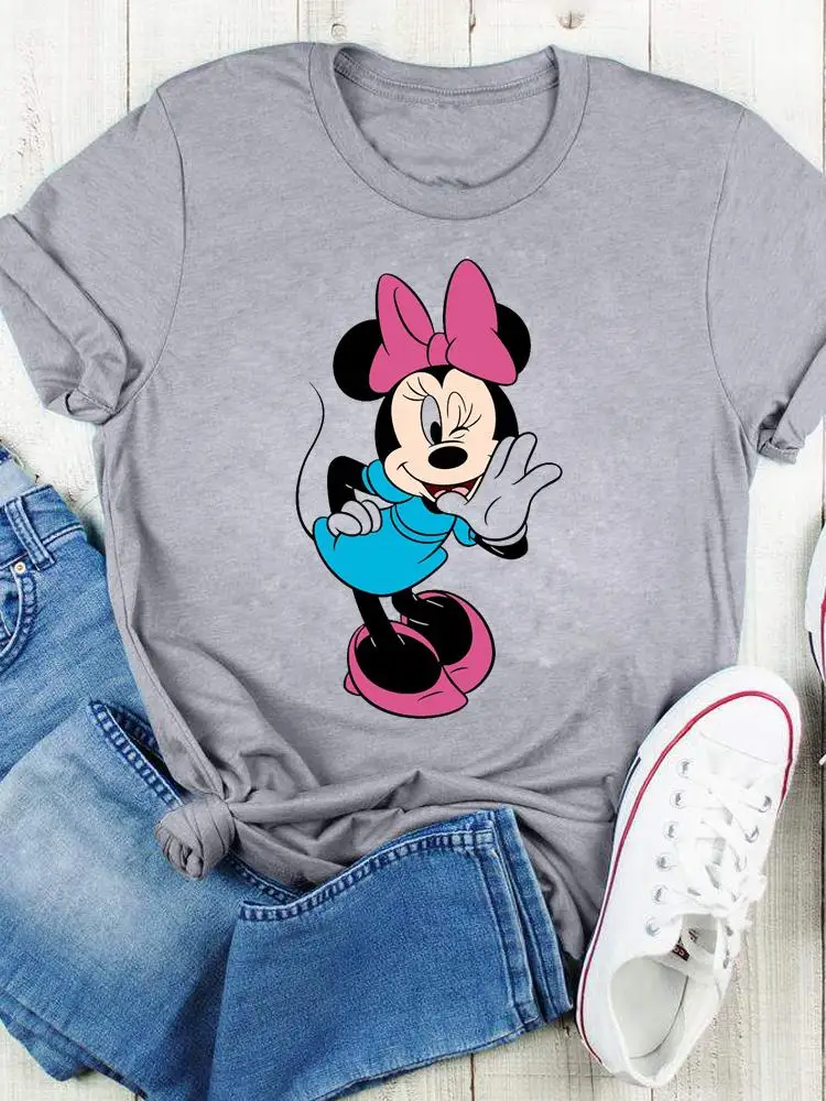 Disney Bow Face Love Summer Tee Shirt Mickey Mouse Fashion Print Clothing Women Cartoon Short Sleeve Top Graphic T-shirts