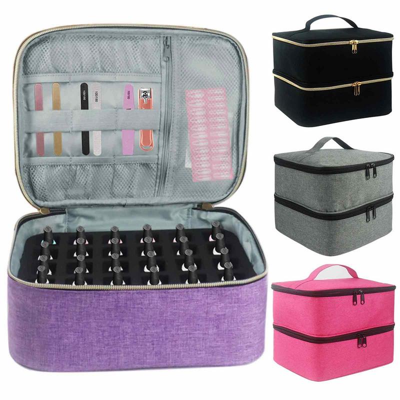 Removable Compartments : With the help of the middle zipper, the two compartments can be firmly connected. Each compartment With a nail Kit Storage separator holds 30 bottles of nail polish up to 15ml