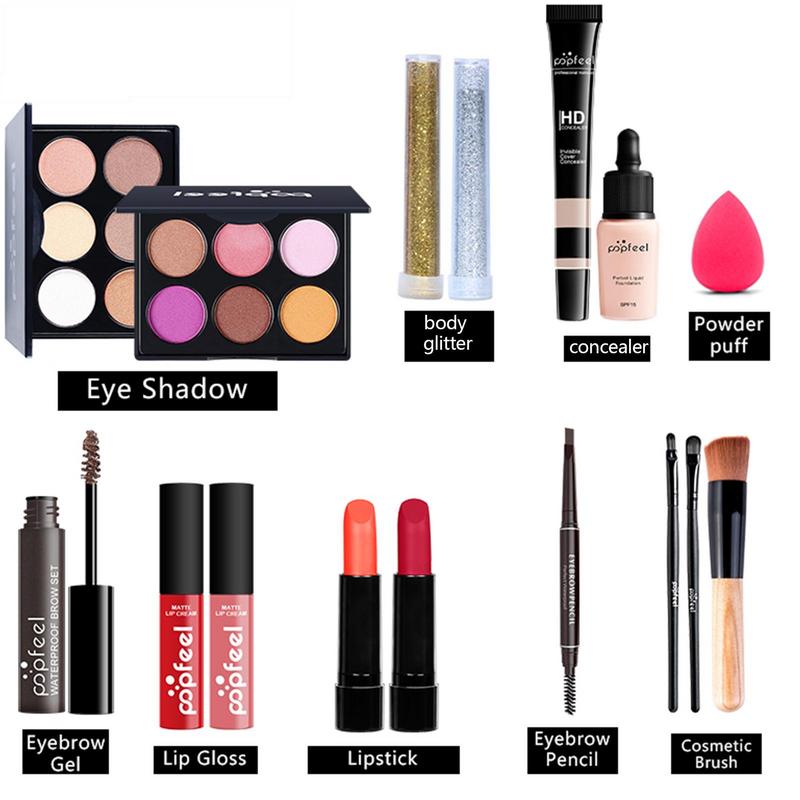 All in One: Girl cosmetic gift kit includes matte eye shadow and glitter eye shadow, lip gloss, eyebrow cream, makeup pen, concealer, etc., to meet your daily makeup needs.