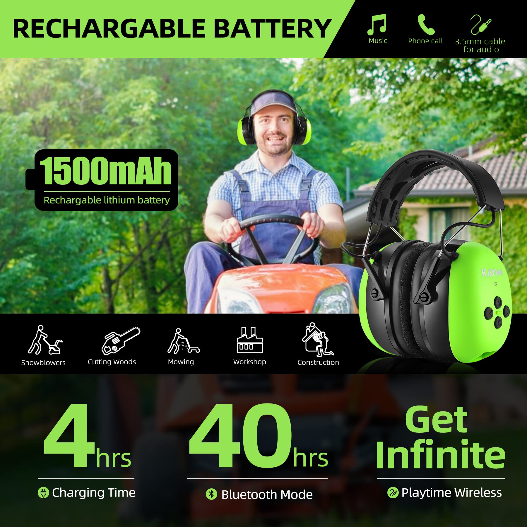 Premium Hearing Protector — The ZOHAN EM037 Hearing Protection Headphones has a high noise reduction rating up to 25dB which meets the European & American standards for noise reduction and will protect your hearing from hazardous sound levels during lawn mowing , woodwork or construction. And with a 4-hour charge time , It has a durable playtime up to 40 hours in Bluetooth mode.