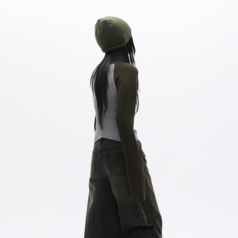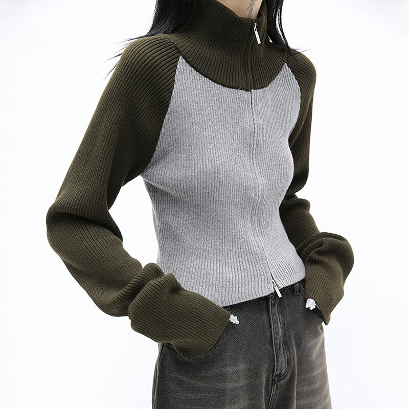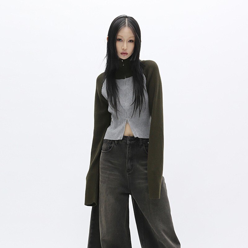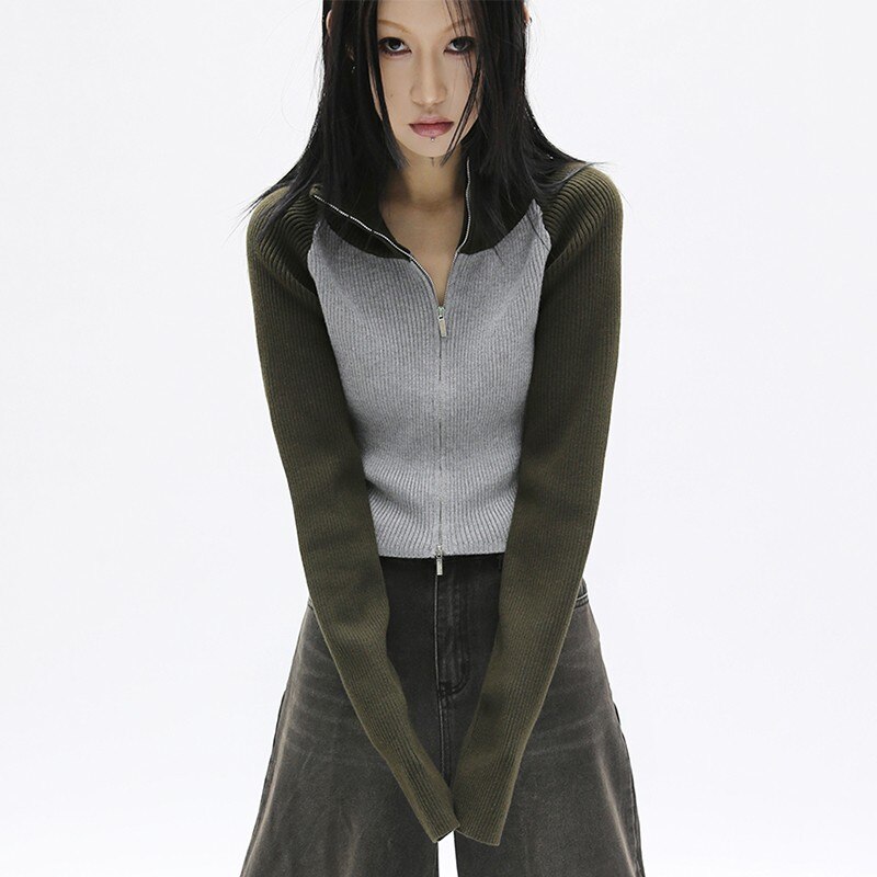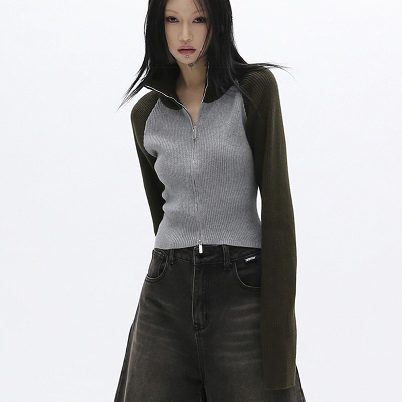 Korean Women Acubi Streetwear Vintage Cyber Y2K Jackets Aesthetic Knitwear Cardigan Oversizer Coats Harajuku Zip Up Tops Clothes