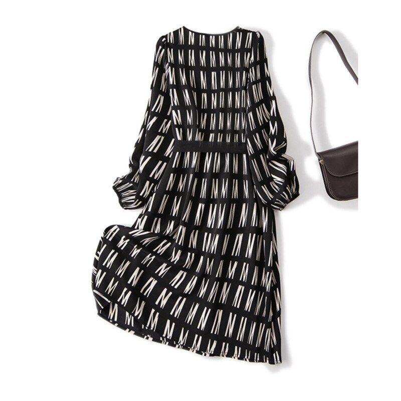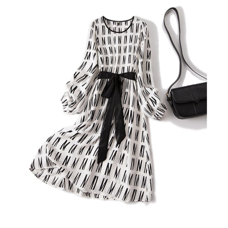 Office Ladies Elegant Long Sleeve Print Chiffon Dresses For Women O Neck High Waist Bandage Slim Dresses For Women Vestido Mujer