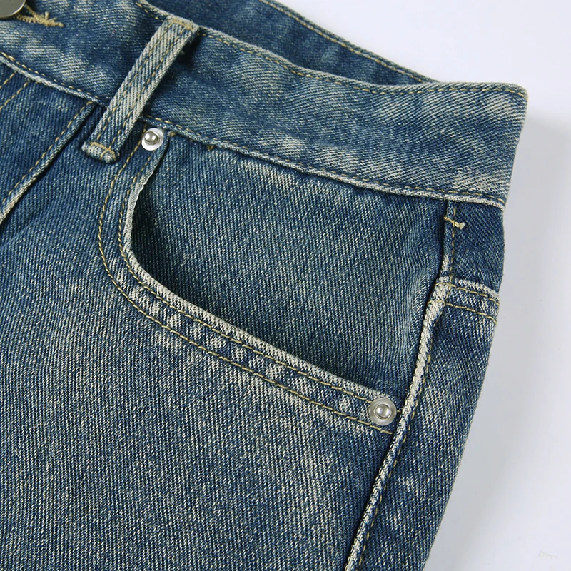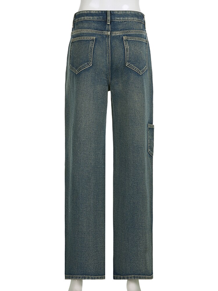 WeiYao Cargo Jeans Washed Vintage 90s Straight Leg Jean Trousers American Retro Pockets Women Low Rise Pants Korean Streetwear