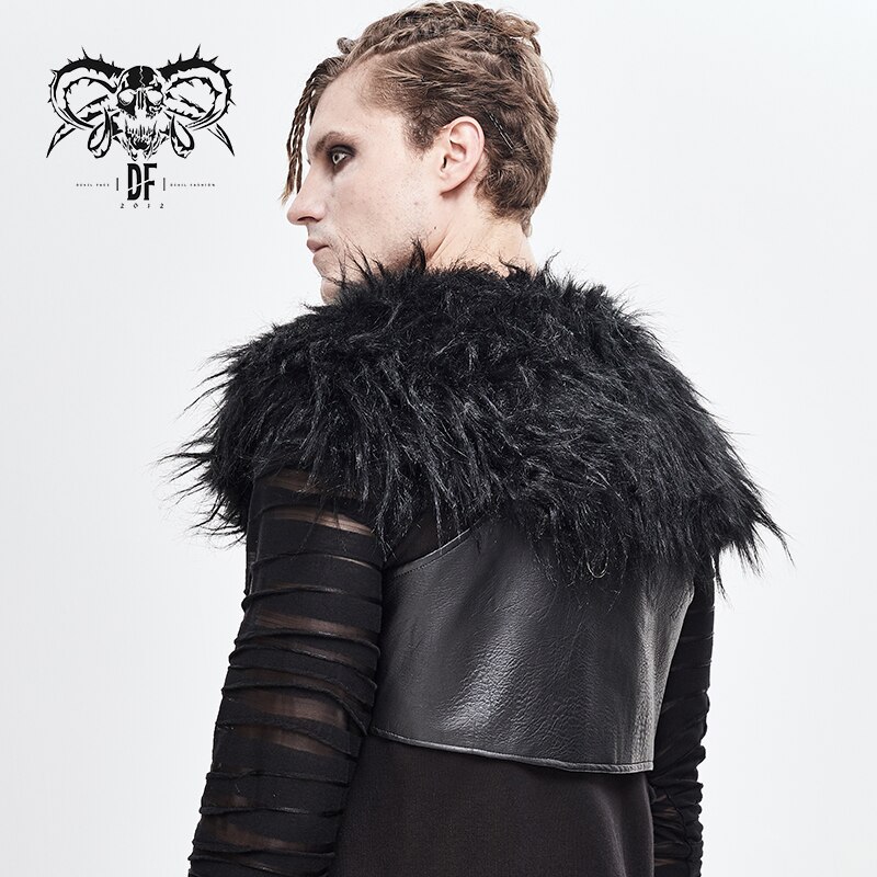 Devil Fashion Men's Punk Rock Fur Collar Vest Fashion Gorgeous Party Stage Performance Pu Waistcoat