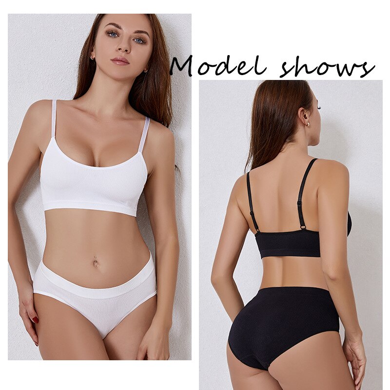 Women Seamless Tops Panties Set Soft Wireless Bra Set Comfortable Bralette Underwear Suit Girls Fitness Crop Tops