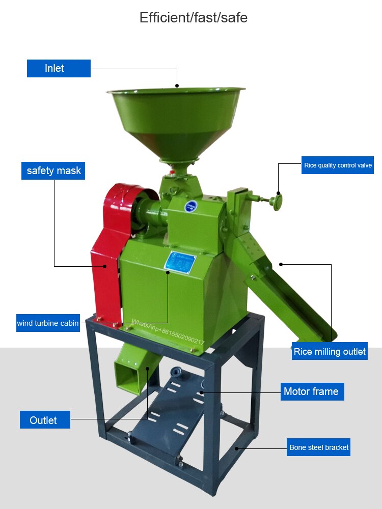 3. When the machine is stopped in the middle, the feeding port should be closed first, so that the rice in the rice milling room is completely milled, and then the mill is stopped. Operation method