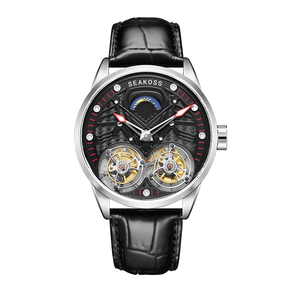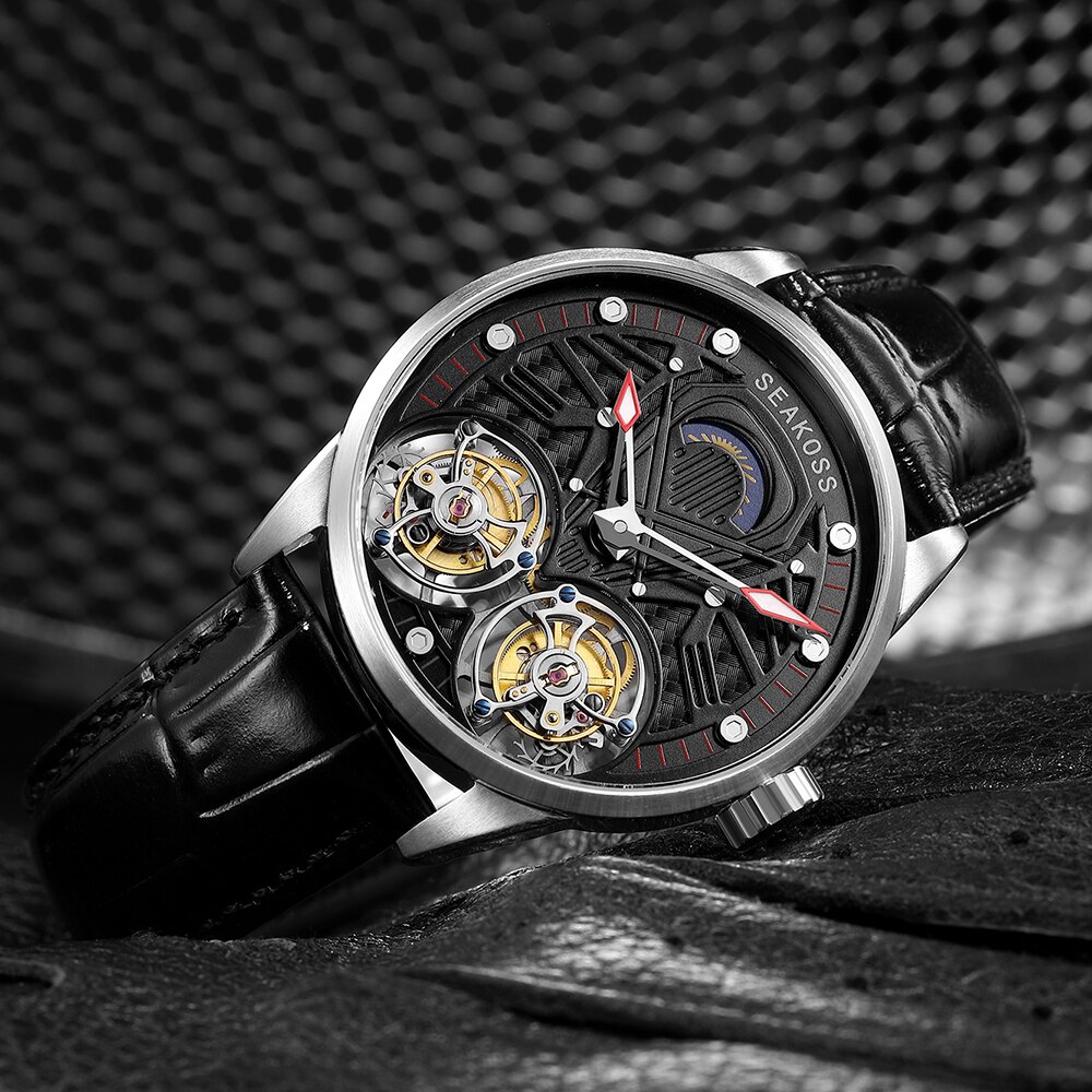 SEAKOSS Super Men's Real Dual Tourbillon Watches 2021 Limited Edition Luminous Hands Manual Winding Pilots Men Mechanical Watch