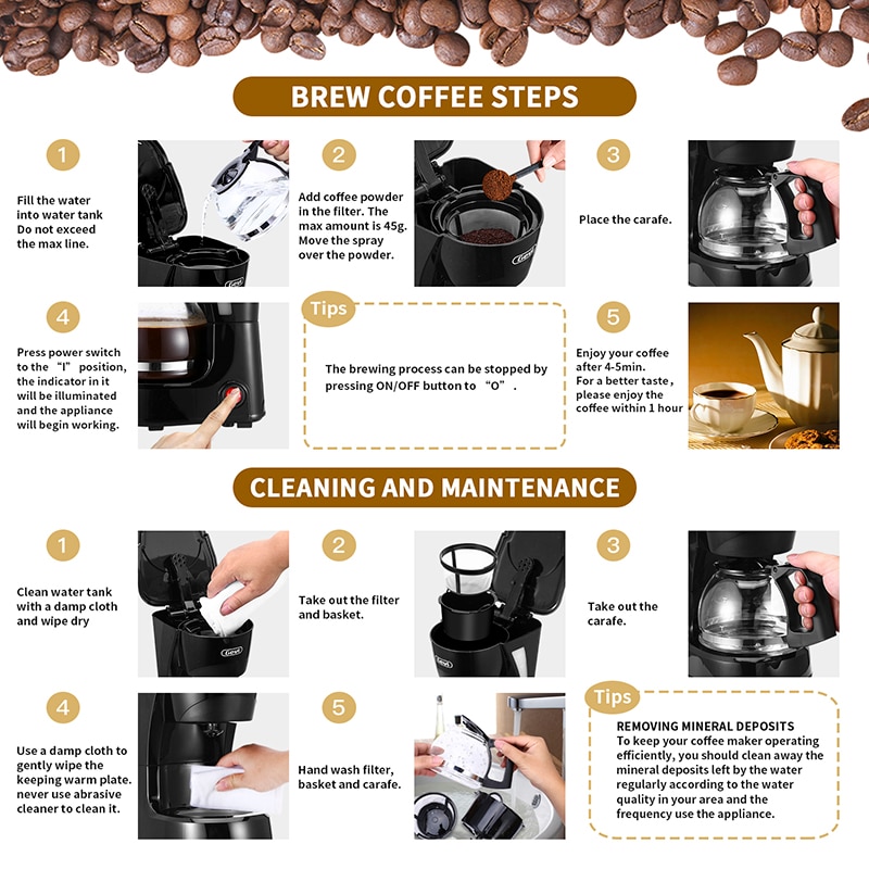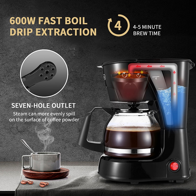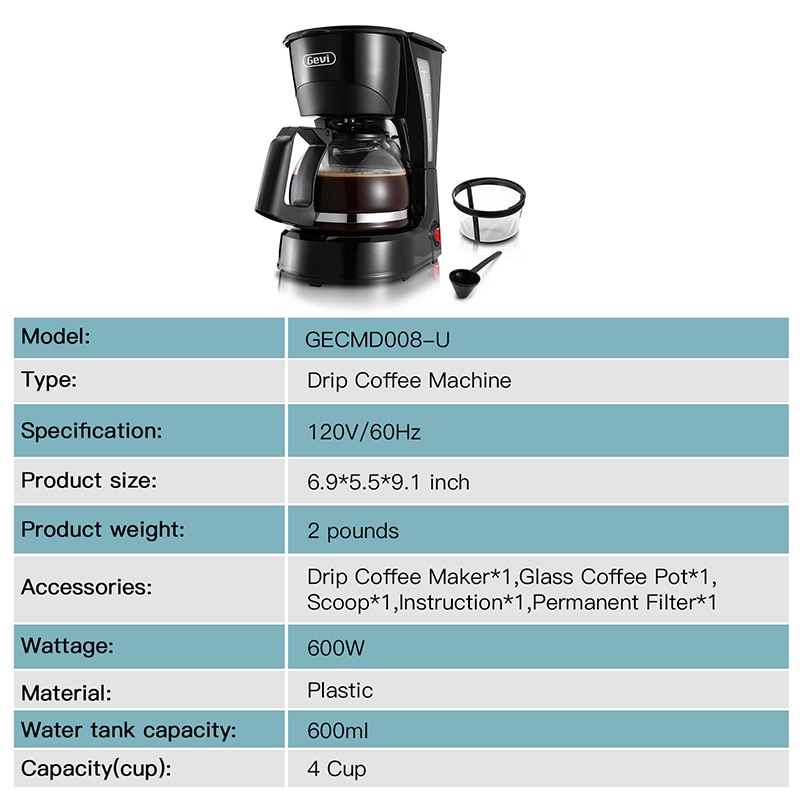 Gevi Drip Coffee Machine 4 Cups Small Coffee Maker with Reusable Filter Warming Plate Coffee Pot for Home and Office GECMD008-U