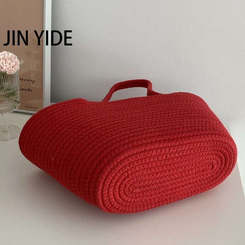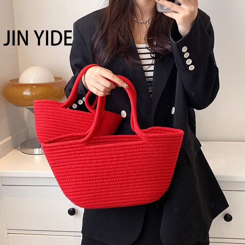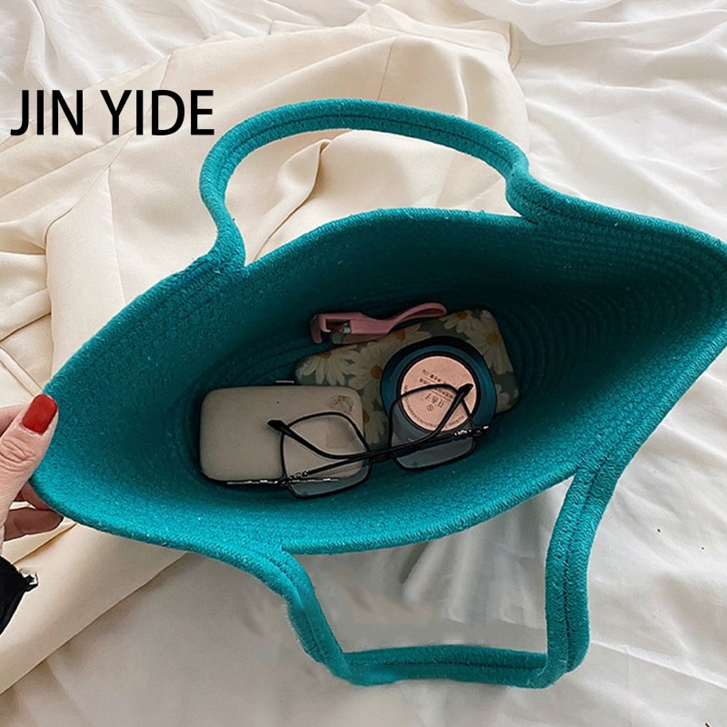 New Straw Bag for Women 2023 Trend Cotton Rope Designer Purses and Handbags Girls Casual Open Weave Beach Carrycot Totes Bags