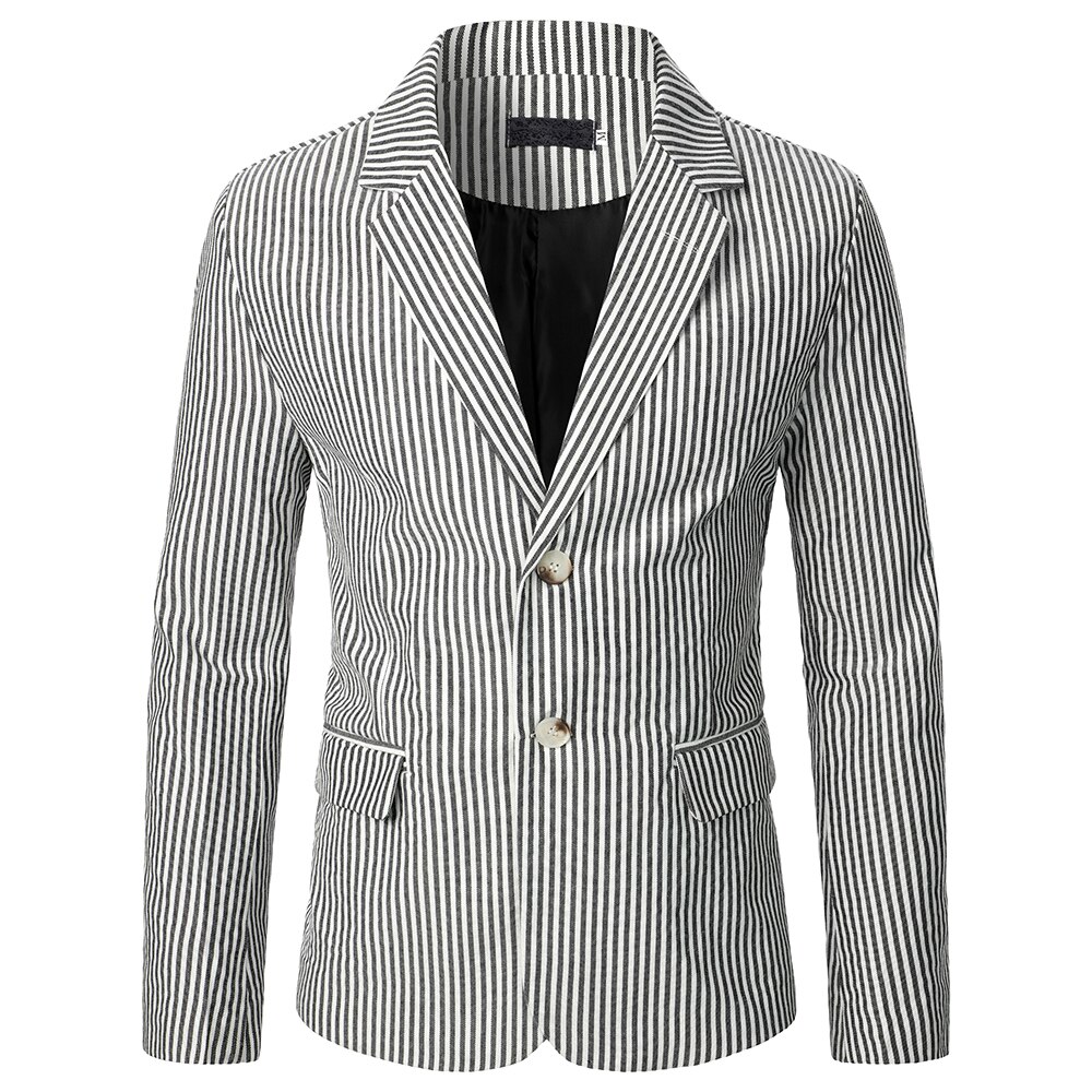 Men Long Sleeve Blazer Classic Stripe Pattern Fabric Causal Business Fashion Streetwear Slim Fit Two Buckles Men Blazer