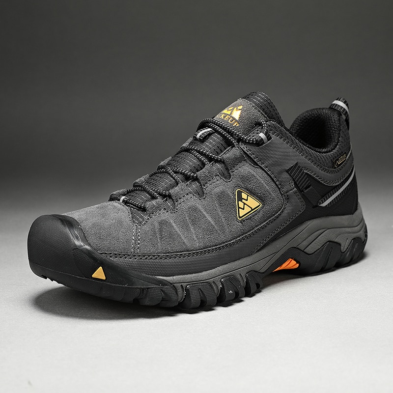 HIKEUP New High Quality Men Hiking Shoes Durable Leather Climbing Shoes Outdoor Walking Sneakers Rubber Sole Factory Outlet