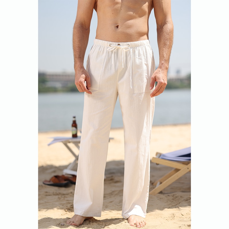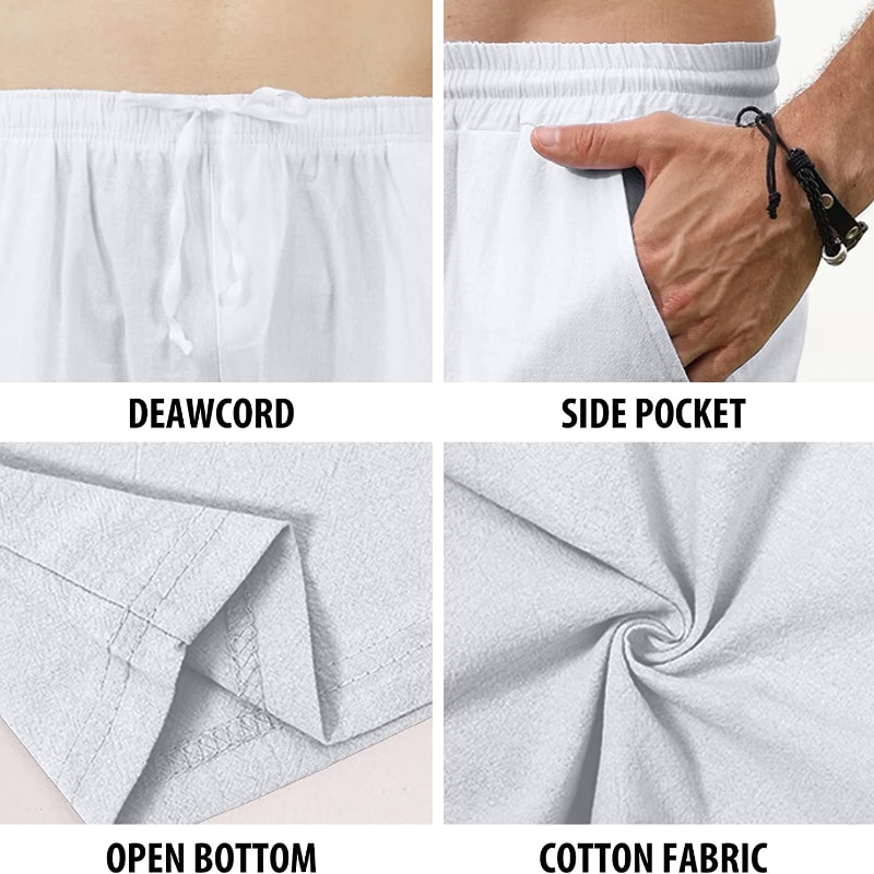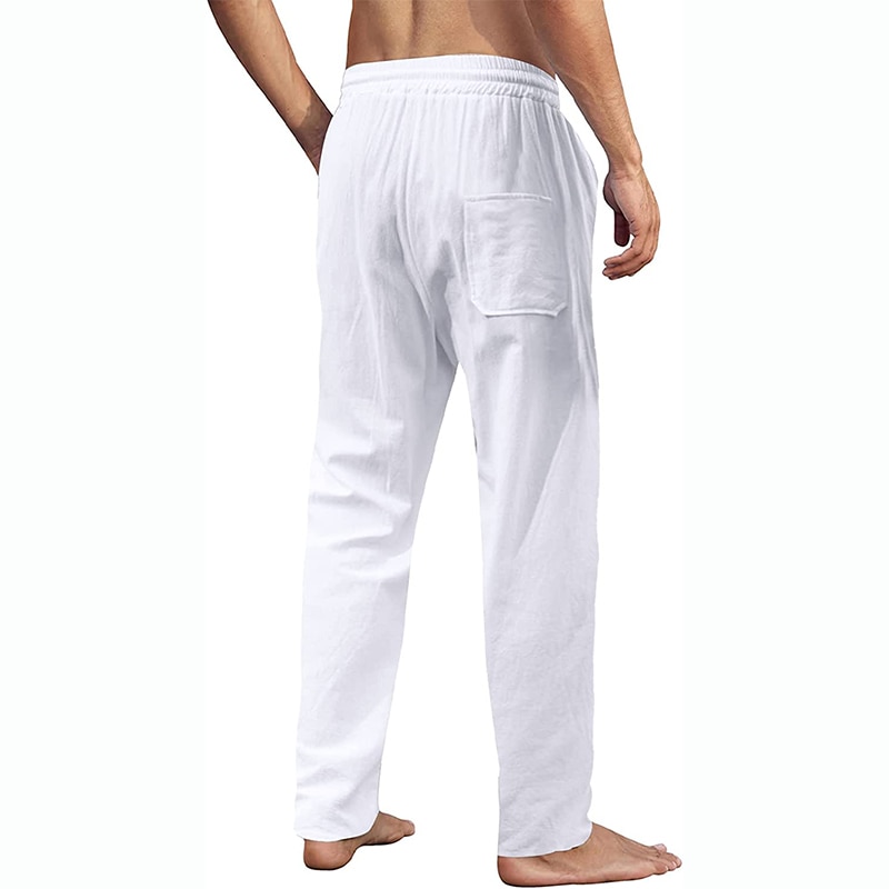 Men's Cotton Linen Pants Loose Spring Casual Pants Male Breathable Solid Color Full Length Drawstring Jogger Yoga Linen Trousers