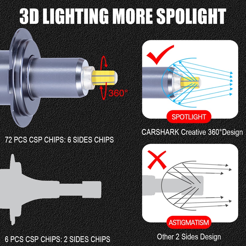 Carshark 9012 Hir2 H7 Led Bulbs Canbus Super 30000Lm H1 H8 H9 H11 Car Headlight Lamps Ice 12V 9005 Hb3 9006 Hb4 Auto Fog Lights