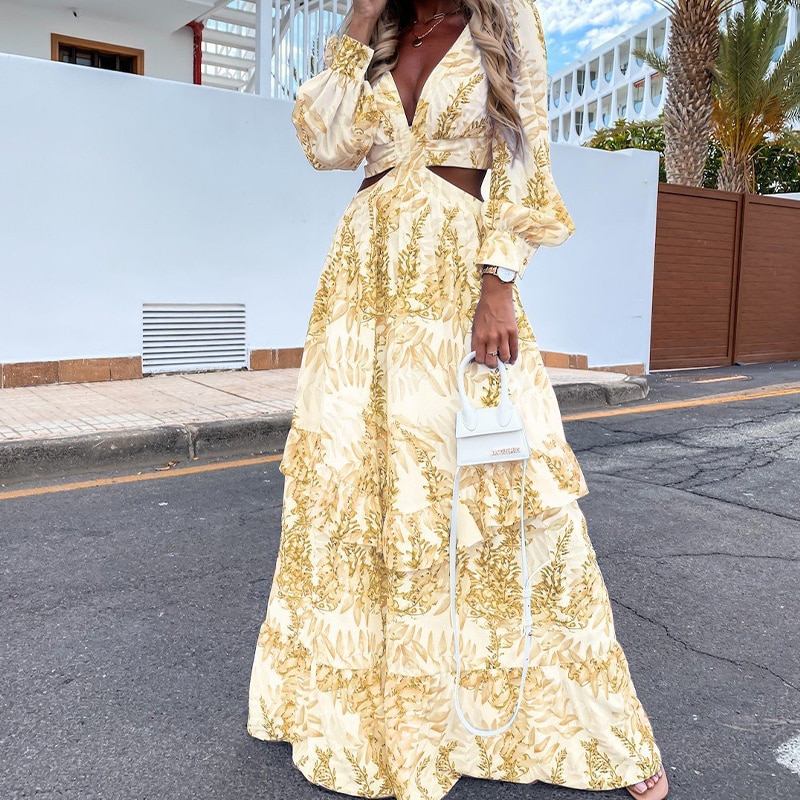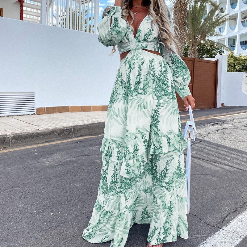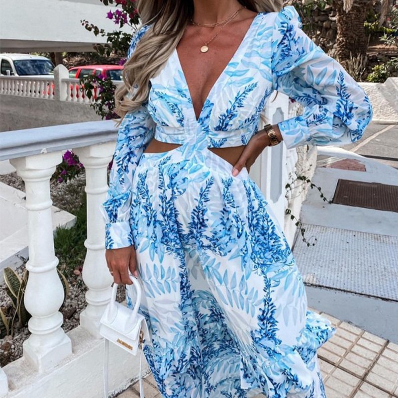 Women Tunic Beach Cover Up Dress 2023 Summer V-Neck Backless Hollow Out Lantern Sleeve Long Dresses Female Club Party Maxi Dress