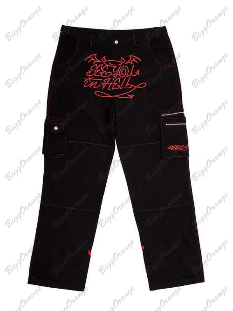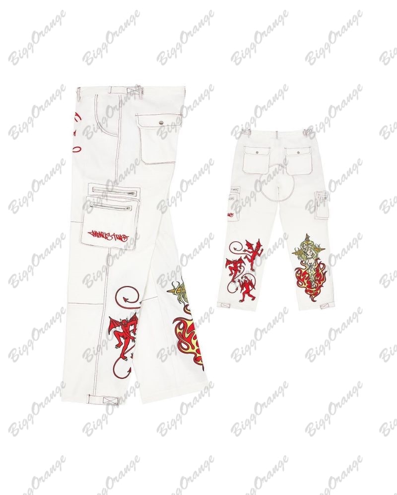 Creative demon embroidery wash jeans men's queen size pants straight y2k slacks men clothing trousers cargo pants