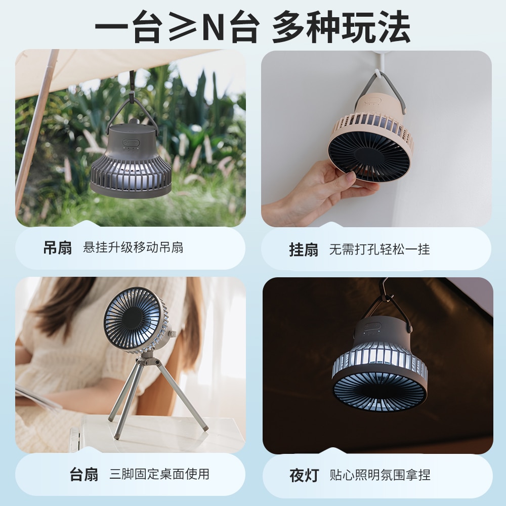 Portable Mini Camping Fan 2000mAh Battery USB Rechargeable Tripod Desktop Fan Hand Fan For Outdoor Night Light