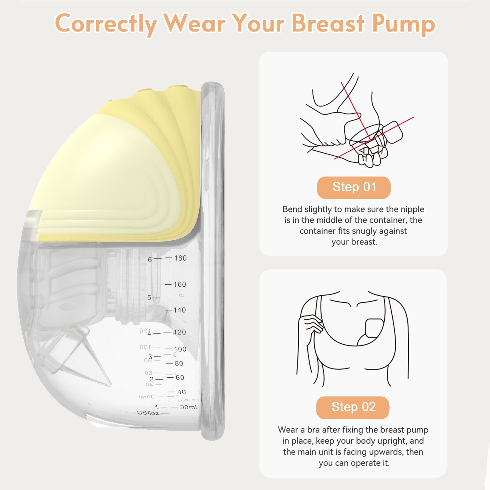 The hands free breast pump can be wear under nursing bra(not included) well for more convenient pumping. Quick to assemble, easy to clean. No cord, no wardrobe changes and no fuss.