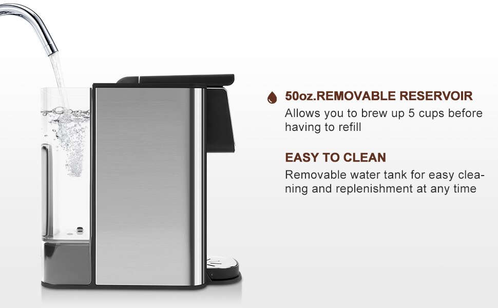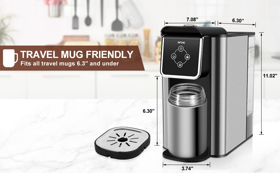 - 【Travel Mug Friendly】 The single serve coffee machine supports the size up to 6.3” travel mugs by removing the drip tray.