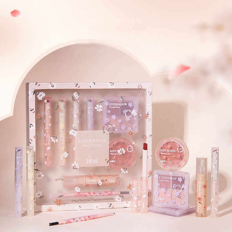 Sdattor FLORTTE Jelly Lipstick Eyeshadow Set Floria First Kiss Love Series Lip Gloss Mirror Water Light Lip Glaze Beauty Cosmeti