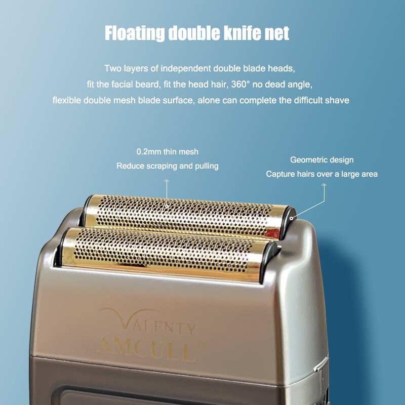 Two layers of independent double blade heads, fit the facial beard, fit the head hair, 360° no dead angle, flexible double mesh blade surface, alone can complete the difficult shave