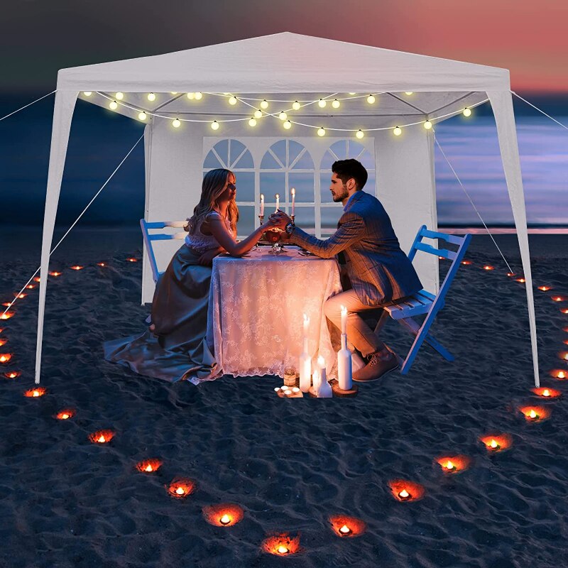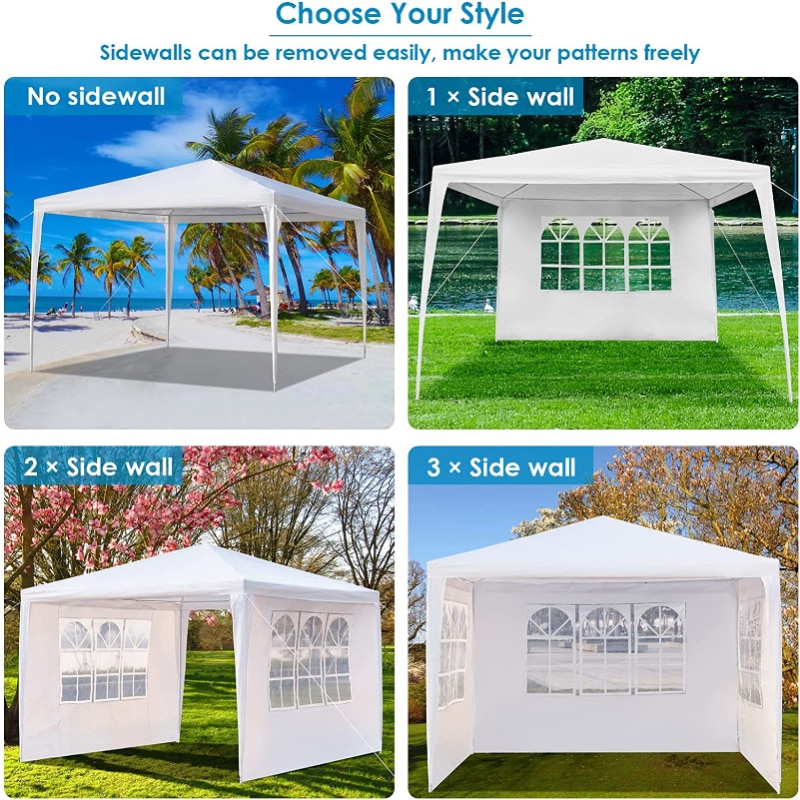 LARGE SPACE: 10x10 feet with 3 sidewalls  White Wedding Party Tent provides 100 square feet of shade coverage, 6 to 10 people at the same time for any outdoor events.