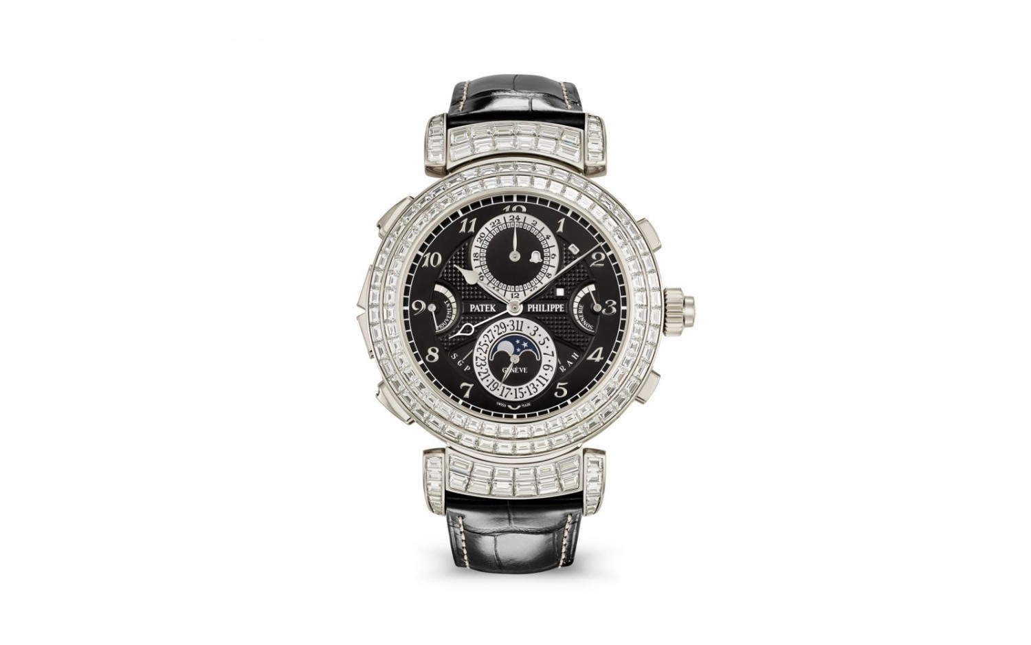 Chuyển động cơ học bằng tay. Caliber 300 GS AL 36‑750 QIS FUS IRM. Chuông của Patek Philippe Grandmaster. Đồng hồ đeo tay có thể đảo ngược hai mặt. Sonnerie lớn và nhỏ. Bộ lặp phút với tiếng cồng cổ điển. Hiển thị chế độ tấn công (S G P). Báo động với thời gian đình công. Chỉ báo bật/tắt báo động. Bộ lặp ngày. Chỉ báo dự trữ năng lượng của chuyển động và đòn tấn công. Chỉ báo cách ly đình công. Múi giờ thứ hai. Chỉ báo ngày/đêm của múi giờ thứ hai. Lịch vạn niên tức thời. Thứ, ngày (trên cả hai mặt số), tháng, chu kỳ năm nhuận bằng kim. Hiển thị năm chữ số trong một khẩu độ. Các giai đoạn của mặt trăng. Mặt số phụ 24 giờ và phút. Chỉ báo vị trí núm vặn (R A H).